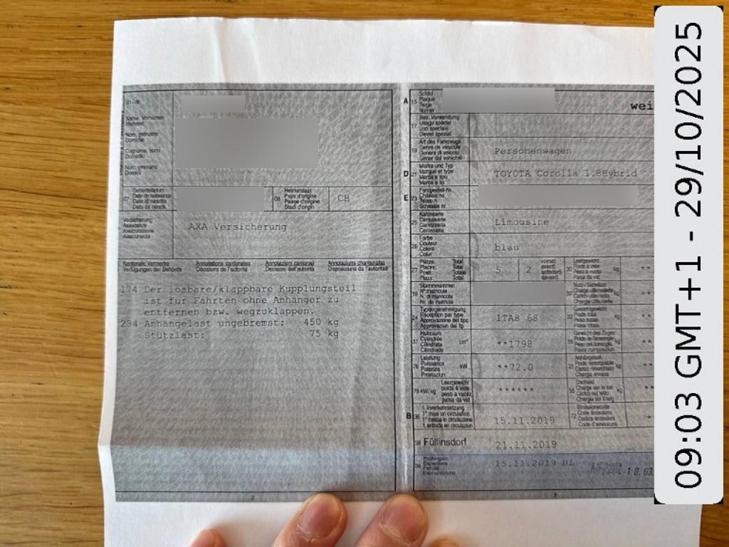 | Fahrzeugausweis | Vorhanden |