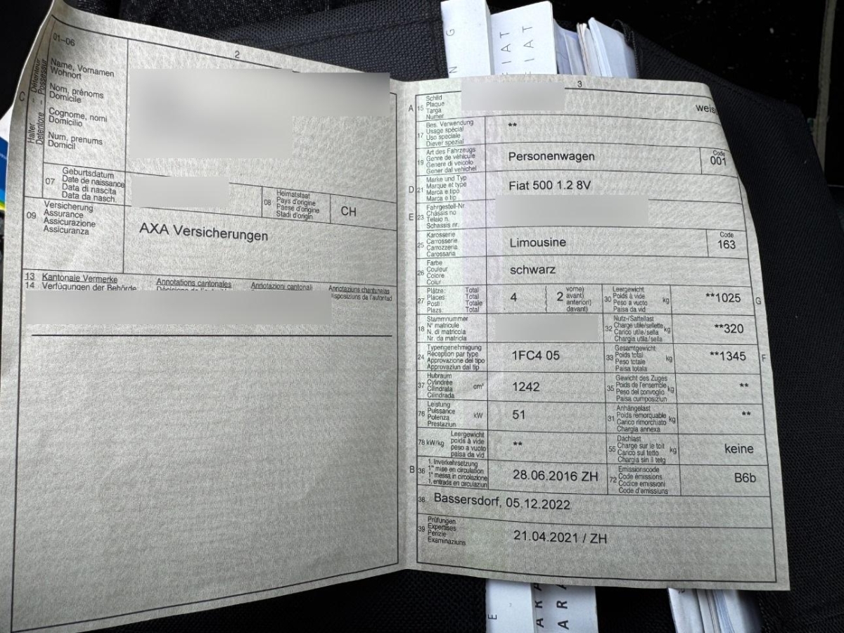 Steckdose 12V, Uni-Lackierung, Kopfstützen vorne höhenverstellbar, Scheibenwischer vorne mit Intervall, Multifunktionslenkrad in Leder, Airbag: Window-Kopfairbags, Sitze: Fahrersitz höhenverstellbar, Räder: Reifenpannen-Kit, Warnblinkautomatik bei Vollbremsung, Berganfahrhilfe (Hill Holder), Komfortblinker, ISOFIX Kindersitzvorrichtung, Licht: Nebelschlussleuchte, Elektronisches Stabilitäts-Programm (ESP), Airbag: Knie-Airbag für Fahrer, Drehzahlmesser, Licht: Tagfahrlicht, Panorama-Glasdach, Elektrische Fensterheber vorne, Getönte Scheiben, Beifahrersitz mit mechanischem Positionsspeicher (Easy-Entry), Türgriffe aussen verchromt, Uconnect Touchscreenradio mit 7” Bildschirm, USB, AUX-IN, Bluetooth Audiostreeming, DAB+, 6 Lautsprecher, Kartentasche an der Rückenlehne, Pollenfilter (Staubfilter), Zentralverriegelung mit Fernbedienung und automatischer Türverriegelung, Anti-Submarining, Bordcomputer, Gurtkontrolle, Assist: Bremsassistent (BAS), Gurtstraffer vorne, Wegfahrsperre elektronisch, Assist: Antriebsschlupfregelung (ASR), Polster: Stoffsitze, Make up-Spiegel beleuchtet für Beifahrer, Rücksitzlehne geteilt abklappbar, Katalysator geregelt, Heckscheibenheizung, Abblendlichtausschaltverzögerung ‘Follow me home’, 3-Punkt-Sicherheitsgurte auf allen Plätzen, Seitenfenster-Zierleisten verchromt, Stossstangen verchromt, Heckscheiben-Wisch-/Waschanlage, Getriebe: 5-Gang-Getriebe, Servolenkung, Stossstangen in Wagenfarbe, Antiblockiersystem (ABS), Aussenspiegel rechts und links beheizbar und elektrisch verstellbar, Räder: Reifendruck-Kontrollanzeige, Tageskilometerzähler, Haltegriff für Beifahrer, Start/Stop-Funktion, Licht: Drittes Bremslicht, Elektronischer Bremskraftverteilung EBD, Wärmeschutzverglasung, Airbag: Airbag Fahrer und Beifahrer inkl. Seitenairbags, Auspuffblende, verchromt, Tankdeckel abschliessbar, Kopfstützen hinten höhenverstellbar, Lenkrad: Lenkrad höhenverstellbar, 4 Leichtmetallfelgen 15J mit Pneu, Klimaanlage, Chrom-Paket