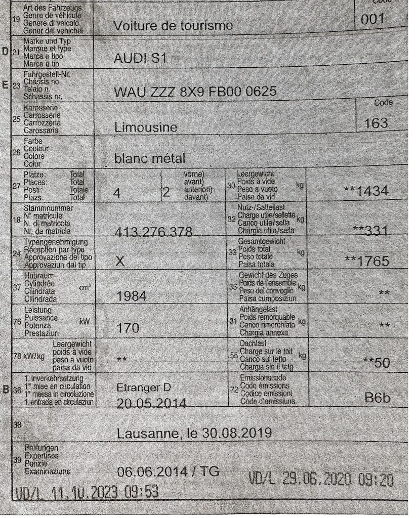 | Numero telaio | WAUZZZ8X9FB000625 |