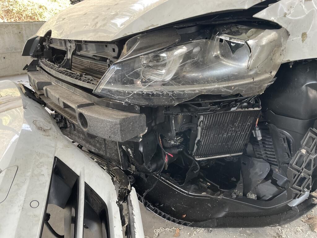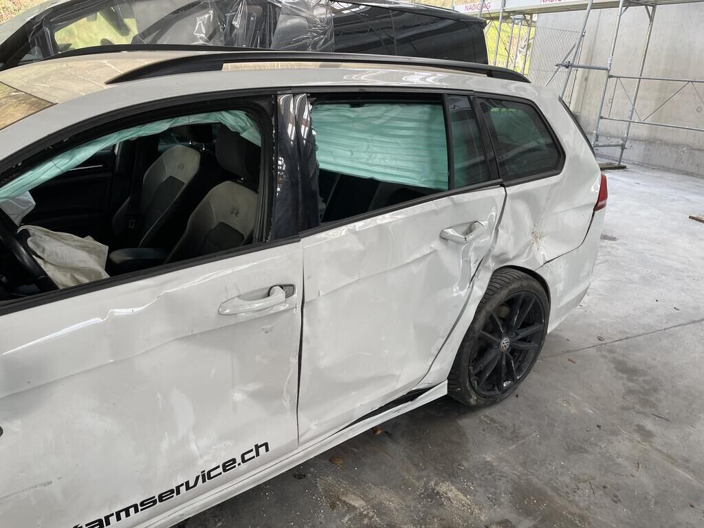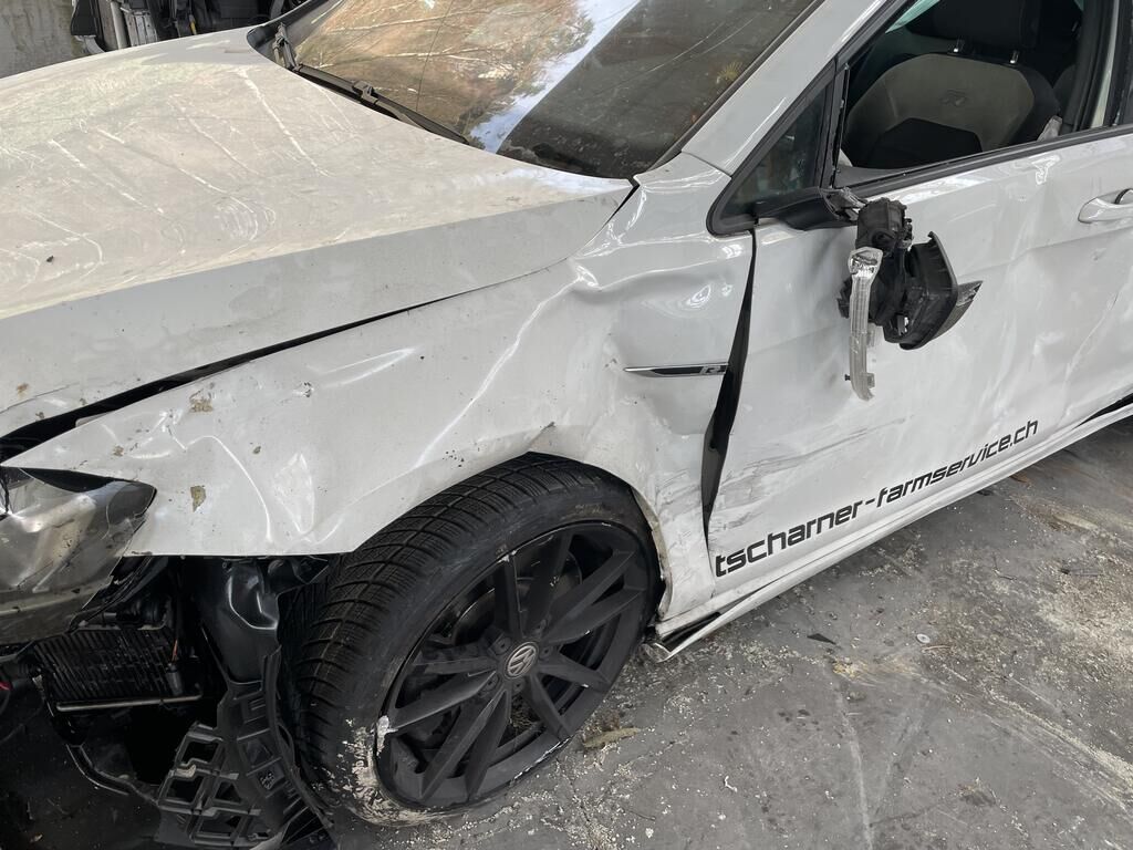 Motorhaube def. / Scheinwerfer def. / Kotflügel def. / Schlossträger def. / Alle Kühler def. / Aufhängung vo li und re def. / Alle Felgen def. / Pneu vo def. / Alle Türe def. / SW h li und re def. / Türscheiben li def. / Airbag gem. Fotos ausgelöst / Gurtstraffer vo ausgelöst / Motor läuft nicht (dreht nicht) /Aufzählung nicht abschliessend
