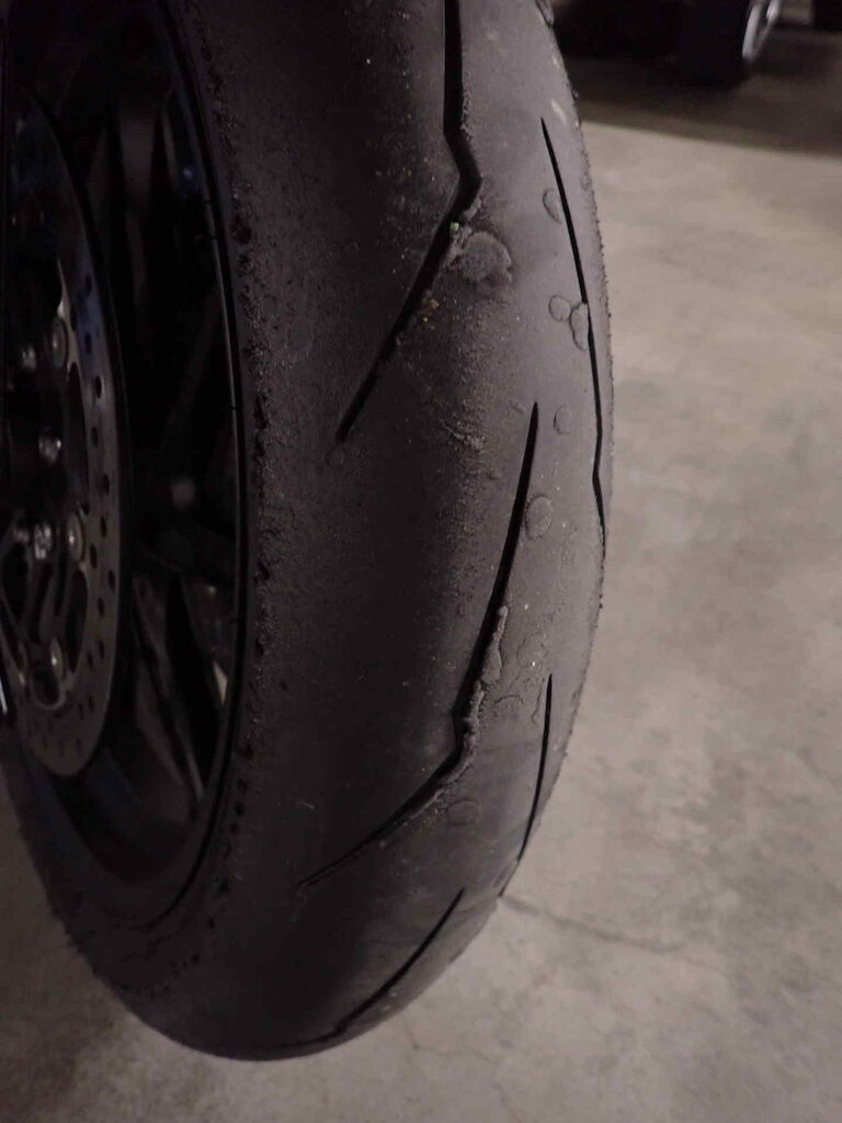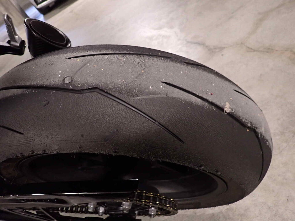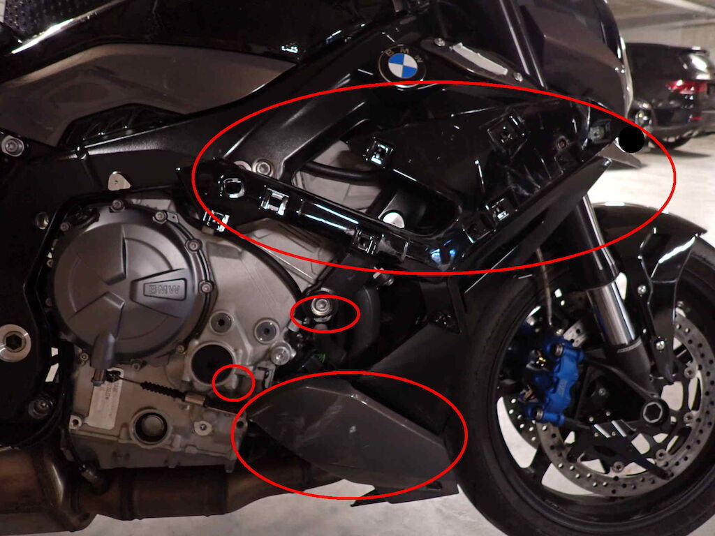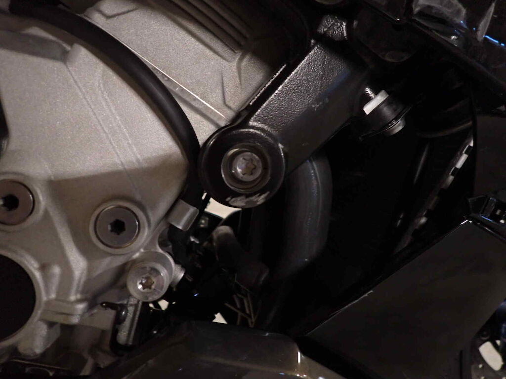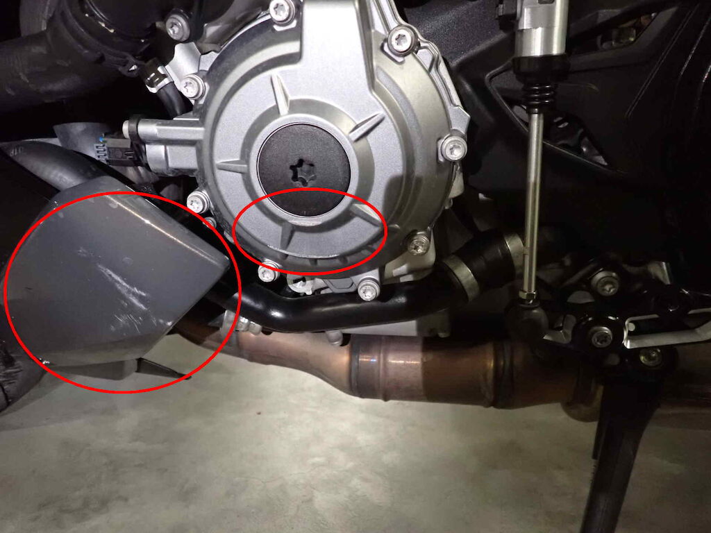 Sturzschaden auf beiden Seiten. Rahmen und Schwinge sind nur leicht oberflächlich beschädigt.