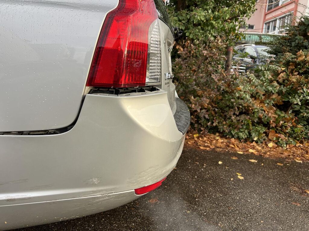 Schaden hinten: Stossfänger, Heckdeckel, Anhängerkupplung, Heckleuchte, Rückstrahler und diverse Kleinteile sind beschädigt, Schadenaufzählung ist nicht abschliessend, da Fahrzeug unzerlegt begutachtet wurde.