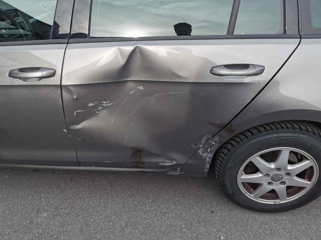 Tuer h l deformiert, Seitenwand l unten verformt, Kontaktspuren an Pneu h l