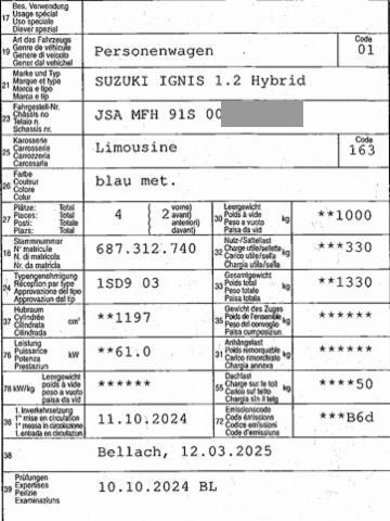 Ausstattung Serienaustattung Airbag Fahrer und Beifahrerseite Sitzheizung vorne Elektrische Fensterheber vorne Aussenspiegel elektrisch verstellbar und heizbar Dachreling Leichtmetallfelgen 16″ Isofix-Kindersitzbefestigung Bodenteppiche ABS und EBV Elektr. Bremskraftverteilung inkl. BA Vorhangairbags vorne + hinten Rückfahrkamera Seitenairbags vorne Einzeln umklappbare Rücksitzbänke 50/50 Nebelscheinwerfer vorne Bluetooth-System Spurassistent Klimaanlage manuell ESP und Elektronische Traktionskontrolle TCS Berganfahrhilfe Fahrersitz höhenverstellbar Deaktivierung Beifahrerairbag LED-Scheinwerfer LED Tagfahrlicht USB-Anschluss Privacy-Verglasung Start + Stopp Automatik Schaltwippen am Lenkrad Spurhalteassistent LDW Details siehe gültige Preisliste des Importeurs Keine Gewähr auf die Angaben der Serienausstattungen Notbremssystem mit Kollisionswarner Multimediasystem DAB+ Sonderausstattung Ausstattung |