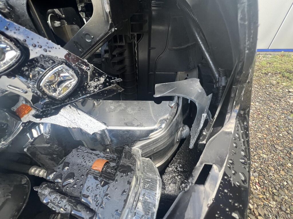 Dabei wurde die Motorhaube, der Prallträger, der Scheinwerfer, der Schlossträger, die Stoßstange, der Kotflügel, die Beifahrertüre, die Seitenwand, die hintere Türe und die Radaufhängung beschädigt.