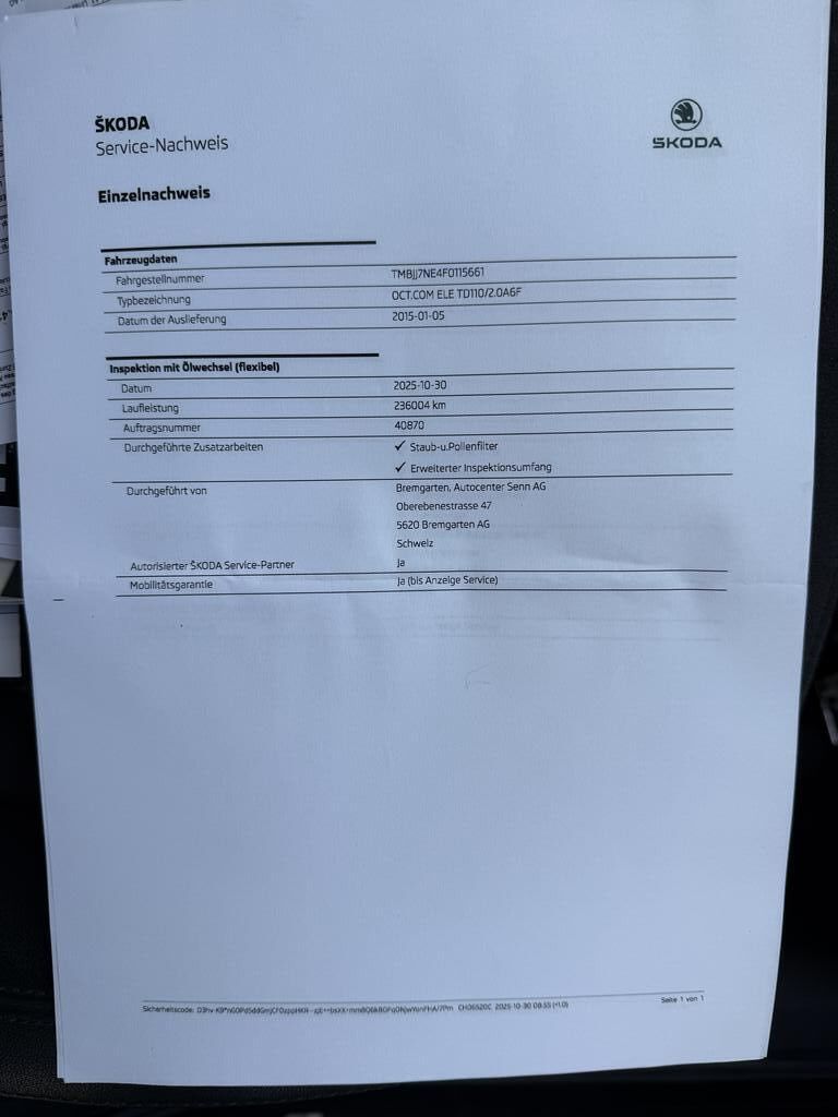 | Tachostand gemäss Servicenachweis vom 30.10.2025 = 236’004 Tachostand kann nicht mehr abgelesen werden |
