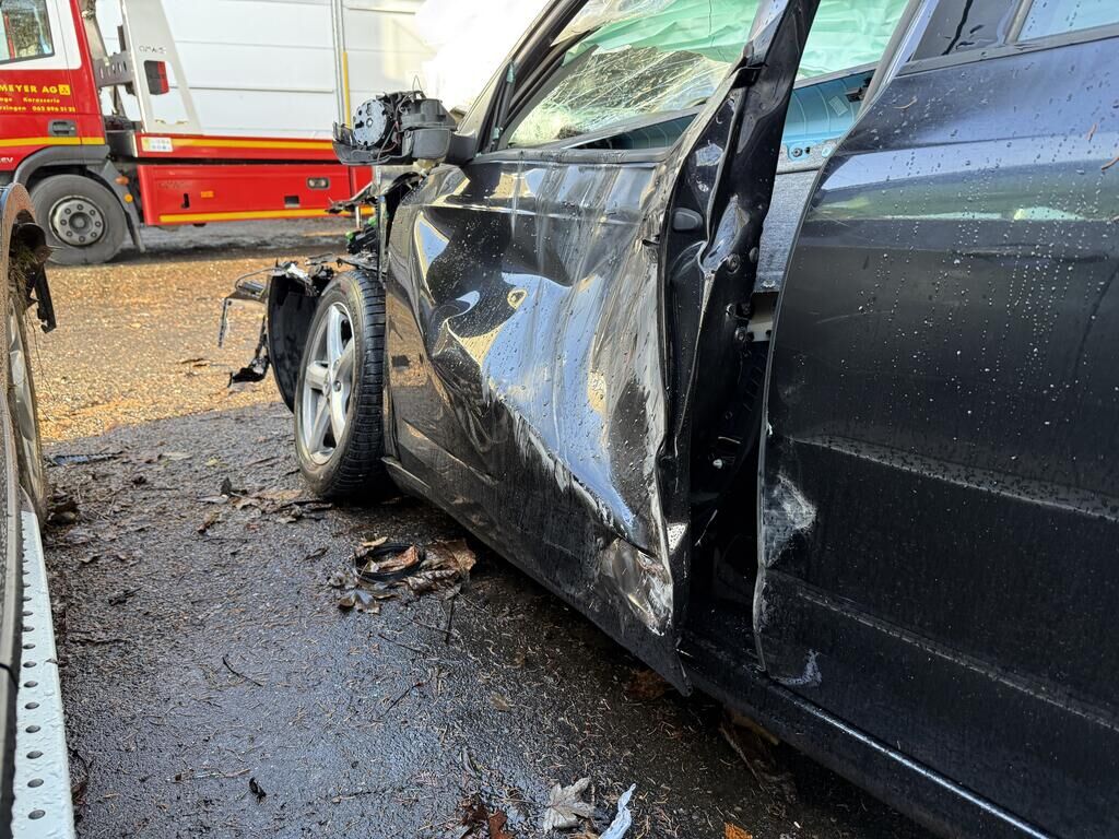 – Rückleuchte links gebrochen, Seitenwand und Stossfänger beschädigt