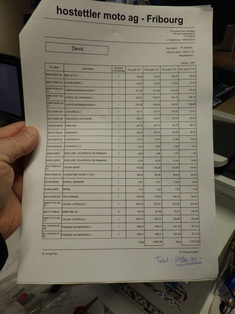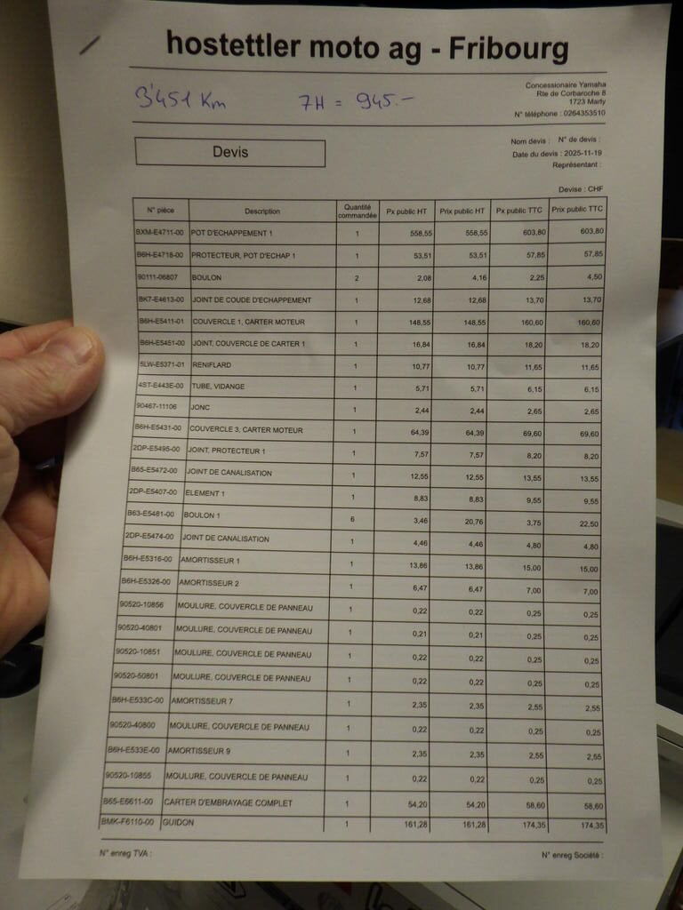 Moto endommagé sur les deux flancs: voir photos et devis.
