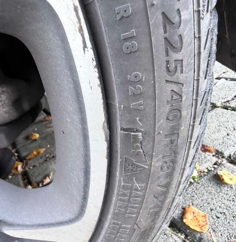 – Alle Felgen und Reifen deformiert, verkratzt
