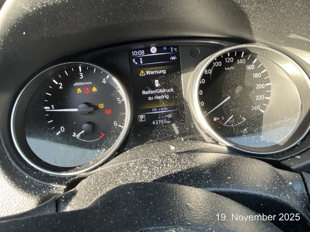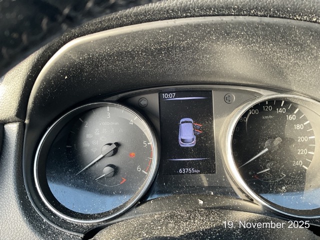 Dachreling silber, 6-Stufen-Automat CVT sequentiell, Kofferraumbeleuchtung, Aussenspiegel automatisch einklappbar, Assist: Chassis Control Technologie (CCT) Aktive Spurkontrolle, Aktive Fahrkom- fortregelung, Automatische Türverriegelung geschwindigkeitsabhängig, 3-Punkt-Sicherheitsgurte auf allen Plätzen, Leseleuchten vorne, Flexi-Board: Modulares Verstausystem im Kofferraum, Stossstangen in Wagenfarbe, Pollenfilter (Staubfilter), Lenkrad: Lenkrad längs- und höhenverstellbar, Beleuchtetes Handschuhfach, Aussentemperaturanzeige, Nebelschlussleuchte, Paket: Fahrerassistenzpaket Visia: autonomer Notbrems-Assistent, Spurhalteassistent, Verkehrszeichenerk. Einparksensoren v+h, Licht: LED-Tagfahrlicht, Airbag: Window-Kopfairbags vorne und hinten, Media: AROUND VIEW MONITOR für 360° Rundumsicht, Elektronisches Stabilitäts-Programm (ESP), Heckscheibenheizung, Ablagen in den Türen, Drittes Bremslicht, Sitze: Mittelarmlehne vorne mit Ablagefach, Sitze: Fahrersitz elektrisch verstellbar, Assist: Regensensor für Scheibenwischer vorne, Kopfstützen vorne höhenverstellbar, Beide Make up-Spiegel beleuchtet, Airbag: Airbag Beifahrer deaktivierbar, Friendly Lighting, Sitze: Komfortsitze vorne, Elektrische Fensterheber vorne + hinten mit Komfortfunktion (Fahrerseite), Sitze: Beifahrersitz höhenverstellbar, Assist: Berganfahrassistent, Assist: Fussgängererkennung, Kopfstützen hinten höhenverstellbar, Türgriffe innen verchromt, LED Scheinwerfer, TPMS Reifendrucküberwachungssystem, Türgriffe aussen in Wagenfarbe, Kindersicherung an den hinteren Türen, Elektronische Parkbremse, Laderaumabdeckung, Instrumentenbeleuchtung, regelbar, Scheibenwischer vorne und hinten mit Intervall, Klima: 2-Zonen-Klimaautomatik, Sitze: Vordersitze heizbar, Assist: Einparkhilfe vorne und hinten, Media: USB/MP3-Schnittstelle, Make up-Spiegel rechts, Wärmeschutzverglasung, Stopp-/Start-System, Aussenspiegel rechts und links beheizt, elektrisch verstell- / und einklappbar, Steckdose 12V, Digital Uhr, Kreuzstützen für Vordersitze verstellbar, Abgedunkeltes Scheibenglas (ab B-Säule), Sitze: Rücksitzbank asymetrisch geteilt umlegbar, Media: Bluetooth-Schnittstelle für Mobiltelefon, Lenkrad: Lenkradfernbedienung, Gurtwarneinrichtung für Fahrer- und Beifahrersitz, Innenspiegel automatisch abblendbar, Airbag: Seitenairbag für Fahrer und Beifahrer, Lenkrad und Schalthebelgriff in Leder, Media: 6 Lautsprecher, Fenstereinfassung in Chrom, Licht: Fahrlichtautomatik, Räder: Reifenreparatur-Set, INTELLIGENT KEY mit Start-/Stopp-Knopf, Sitze: Mittelarmlehne hinten mit 2 Getränkehaltern, Frontscheibe Verbundglas, Tankdeckel-Entriegelung von innen, Gurtstraffer mit Gurtkraftbegrenzer vorne, Schaltempfehlung, Sitze: ISOFIX-Befestigungspunkte für Kindersitz an den äusseren Rücksitzen, Make up-Spiegel links, Blinker in Aussenspiegel, Licht: Nebelscheinwerfer mit Chromeinfassung, Getränkehalter, 2 vorne, Defrosterdüsen für Front und Heckscheibe, Sitze: Fahrersitz höhenverstellbar, ABS, EBD elektronische Bremskraftverteilung, Assist: Tempomat mit Geschwindigkeitsbegrenzer, Zentralverriegelung mit Fernbedienung, Ambientebeleuchtung, Bordcomputer, Lackierung: Uni-Lackierung, Armlehnen an den Türen, DAB+ (Digital Audio Broadcasting), Innenlicht-Abschaltverzögerung, NissanConnect Navigationsystem mit 7” Touchscreen inkl. TMC, Radio-CD mit MP3 6LP, USB, iPod-Gateway, Bluetooth, DAB, Google, Rückfahrk, Around View Monitor, Partikelfilter und Oxydationskatalysator, Aussenspiegel in Wagenfarbe, Servolenkung geschwindigkeitsabhängig, Polster: Teilledersitze, Räder: 4 Leichtmetallfelgen 19J mit Pneu, Airbag: Airbag Fahrer und Beifahrer, Wegfahrsperre elektronisch