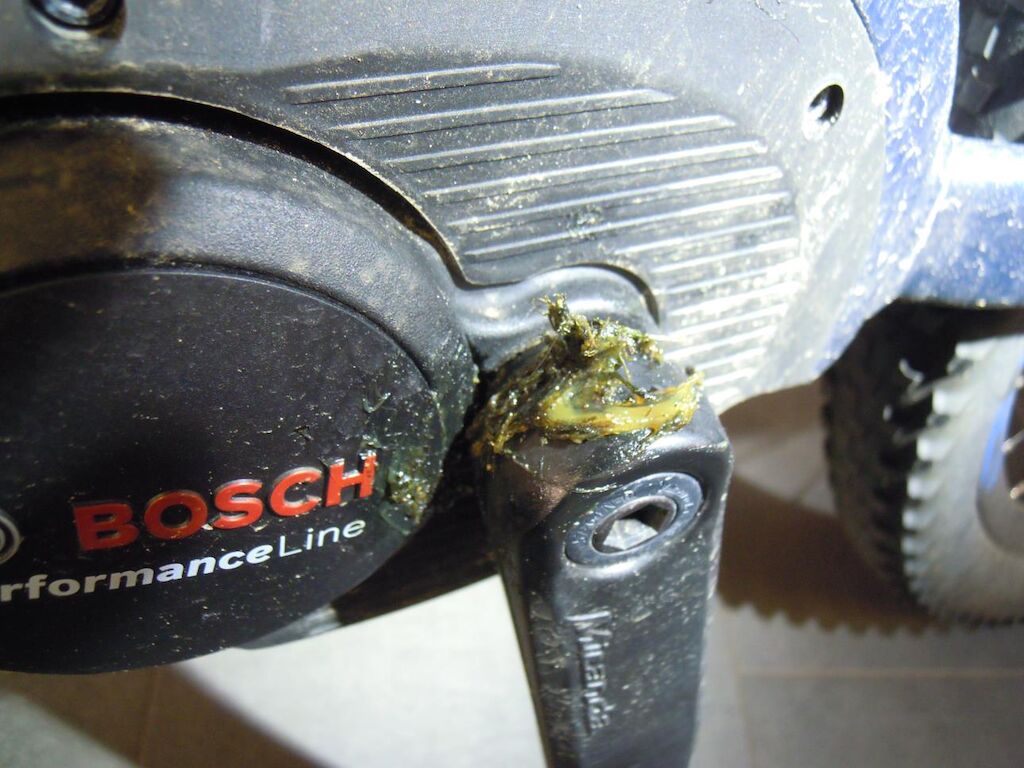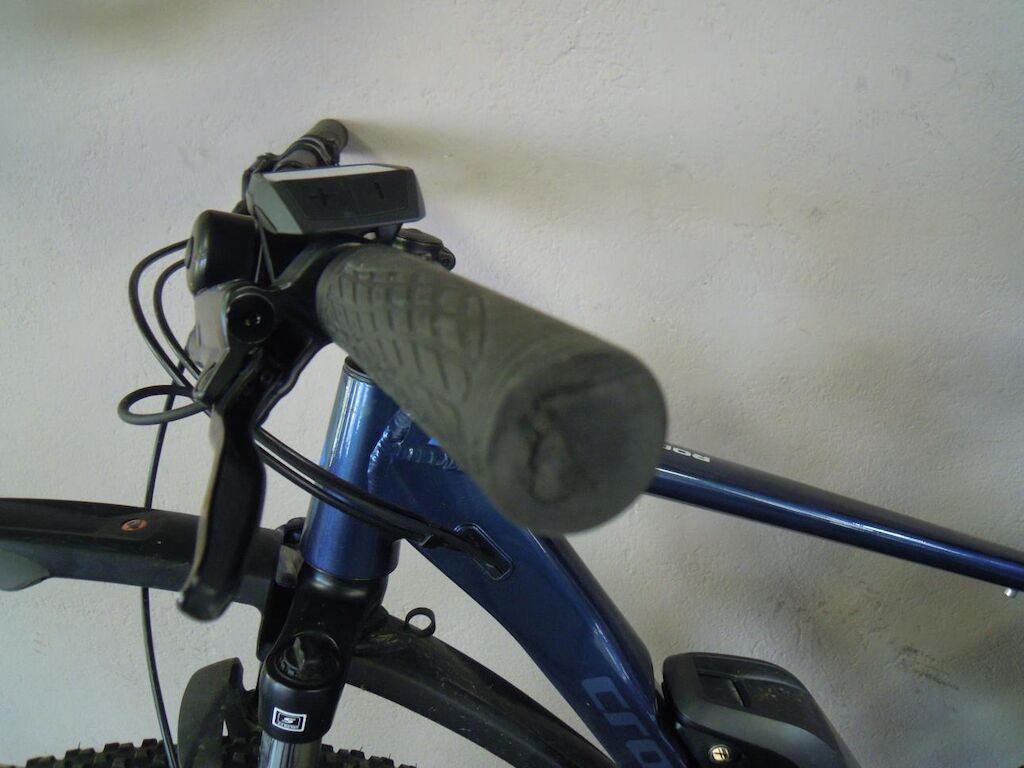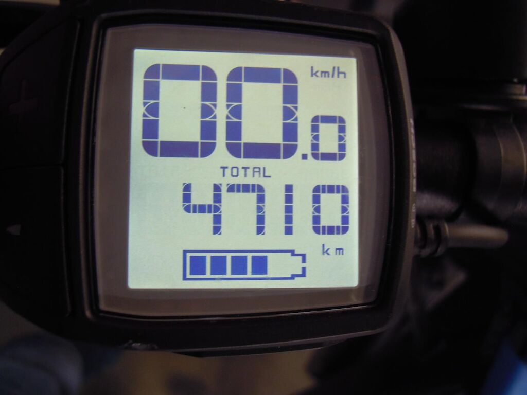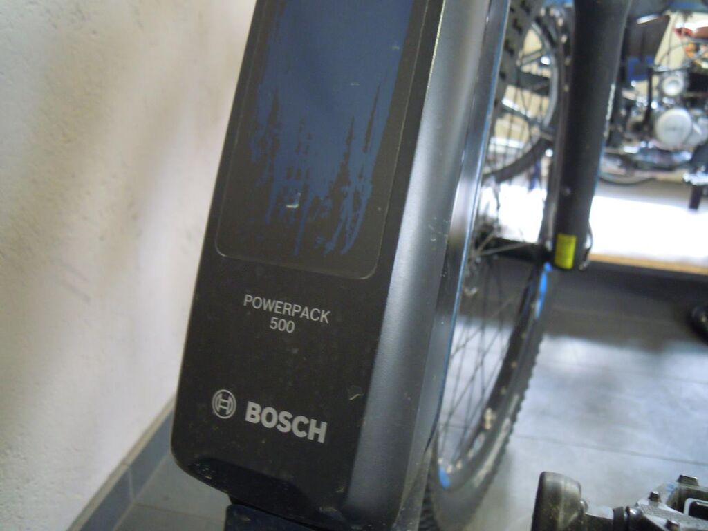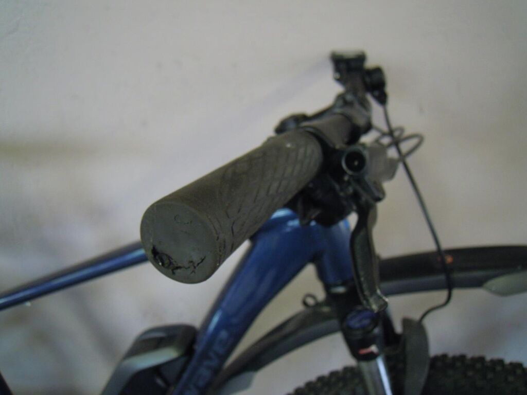Fourche avant légèrement déformée, pédaliers, leviers de frein, support de levier de frein droit griffés, poignées caoutchouc de guidon déchirées, moteur d’assistance en défaut et n’assiste plus (codes de défaut mémorisés ne peuvent pas être effacés)