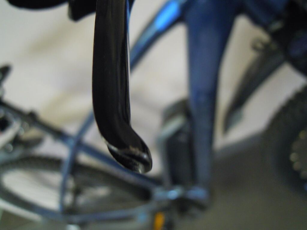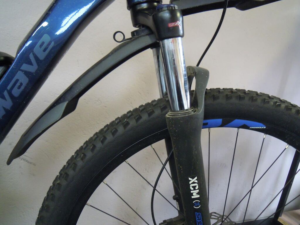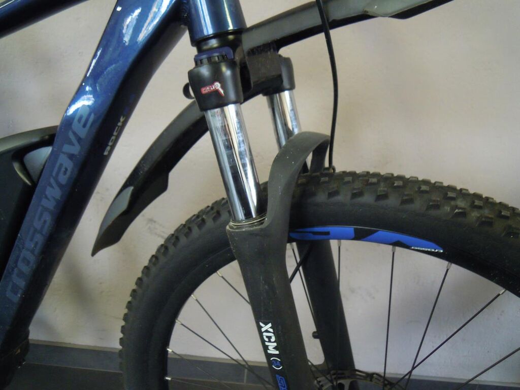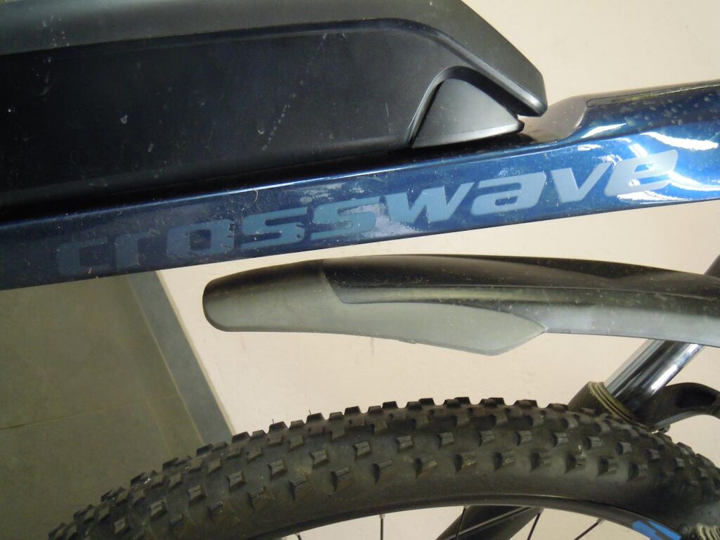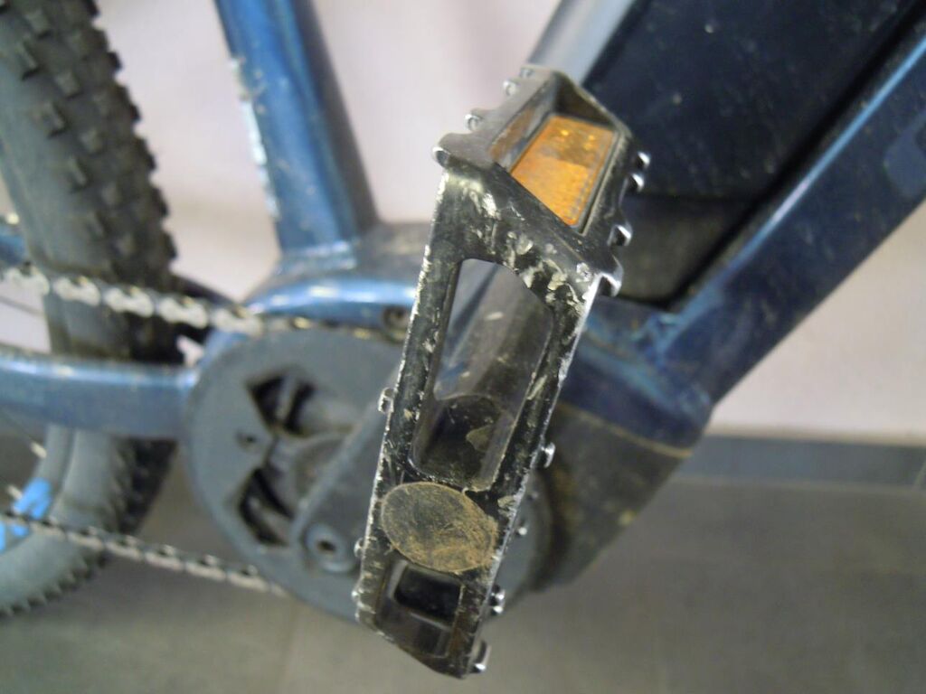 Fourche avant légèrement déformée, pédaliers, leviers de frein, support de levier de frein droit griffés, poignées caoutchouc de guidon déchirées, moteur d’assistance en défaut et n’assiste plus (codes de défaut mémorisés ne peuvent pas être effacés)
