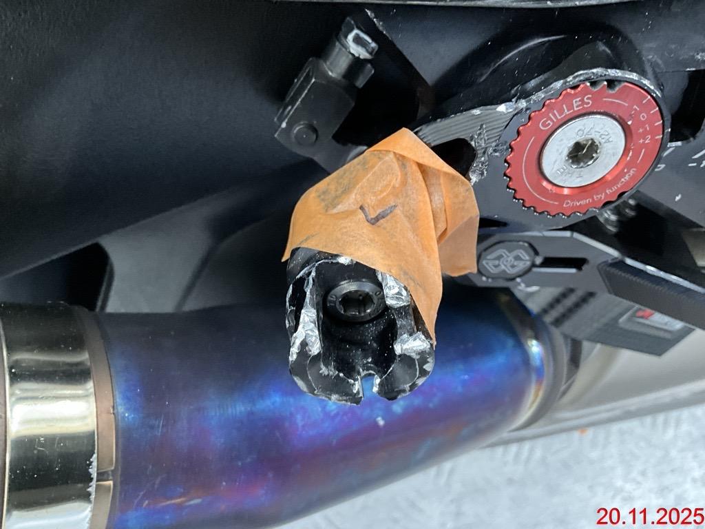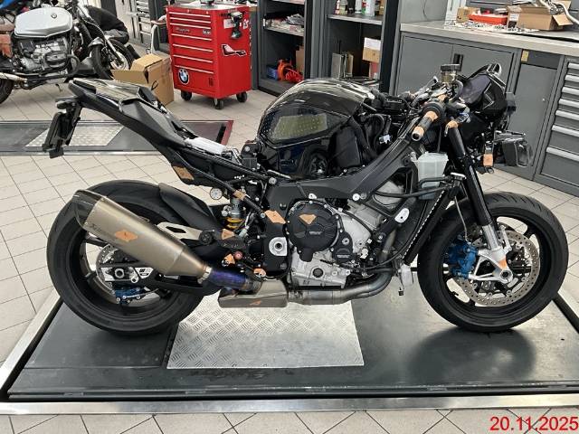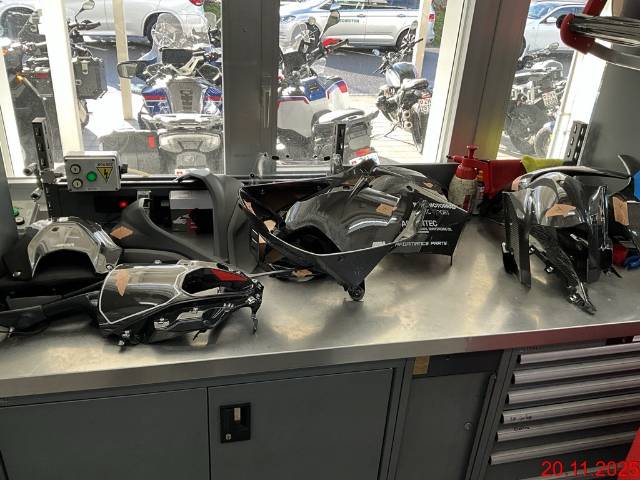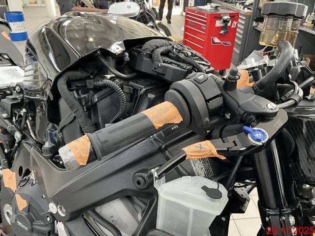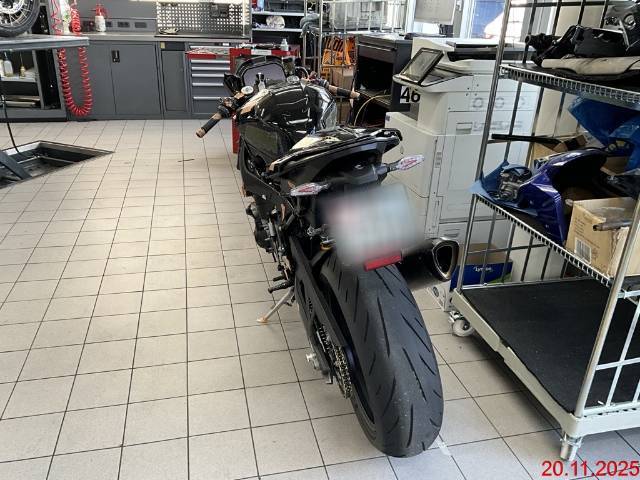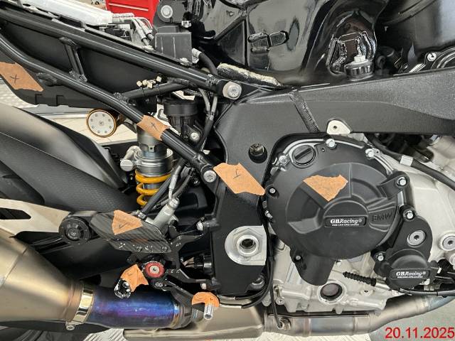 Öhlins Fahrwerkumbau vorne und hinten, Ilberger Carbon Zusatzverschalung unten, Gilles Fussrastenanlage, Bonamici Lenkerstummel /-umbau, teilweise auf schwarz umlackiert.
