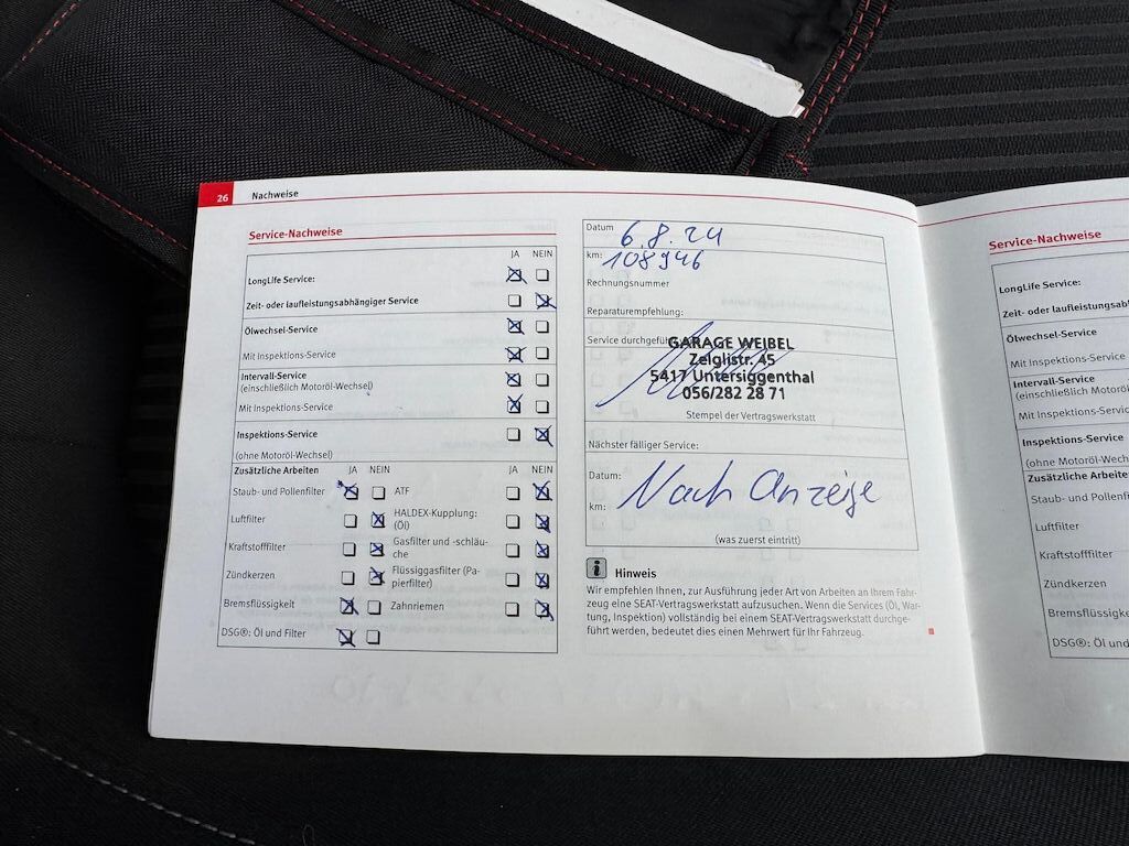 – Letzter Service 06.08.2024 108’946km