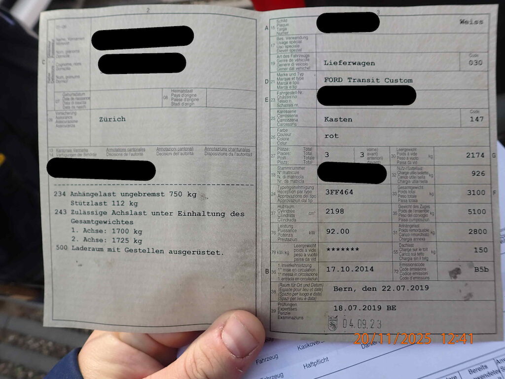 | -Innenausbau vorhanden. Neuwert aus Jahr 2014 ca. CHF 6000.- Exkl. Werkzeuge und Material in den Schubladen. Dieses würde noch entfernt werden. -Dachträger vorhanden -S-Räder mit Stahlfelgen vorhanden -Starterbatterie wurde im Oktober 2025 ersetzt -Bremsen vorne seien nächstens verbraucht. Sonder- und Serienausstattung siehe Anhang |