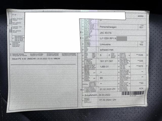 Serienaustattung Airbag Fahrer und Beifahrerseite Sitzheizung vorne Elektrische Fensterheber vorne + hinten Aussenspiegel elektrisch verstellbar und heizbar Dachreling Zentralverriegelung mit Fernbedienung Alarmanlage Reifendruck-Kontrollsystem RDK Rücksitze geteilt umklappbar ESP/ Bremsassistent EBA Leichtmetallräder 16″ Garantie 3 Jahre/ 100’000 km Servolenkung geschwindigkeitsabhängig Isofix-Kindersitzbefestigung hinten Vordersitze höhenverstellbar ABS und EBD Elektr. Bremskraftverteilung Geschwindigkeitsregelanlage Lederausstattung Klimaautomatik Reifen-Reparatur Set Elektronische Parkbremse mit Anfahrhilfe USB-Anschluss Bluetooth Freisprecheinrichtung Keyless-Access Details siehe gültige Preisliste des Importeurs Ladekabel Keine Gewähr auf die Angaben der Serienausstattungen Antriebsbatterie gekauft 360° Kamera Touchscreen-Bildschirm 8” Garantie Batterie 5 Jahre/ 100’000 km Sonderausstattung |