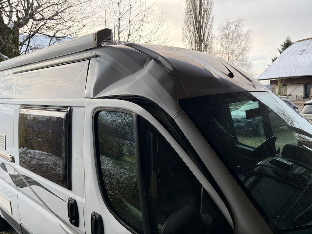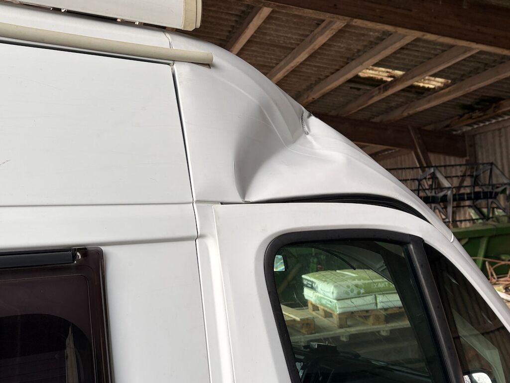 Kollisionsschaden, mit Beschädigung der Stossstange, dem Kotflügel, dem Radhaus innen, der A-Säule, dem Türrahmen, der Frontscheibe, der Türe, der B-Säule, dem Dachblech, sowie Teilen der Innenverkleidungen und diverser Anbauteile.