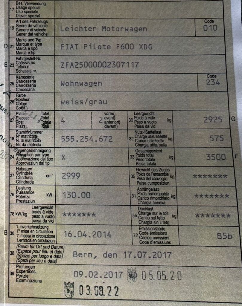 | Tipo veicolo / Costruzione / Porte | Carovana / Veicolo abitabile / Carovana / 4 |