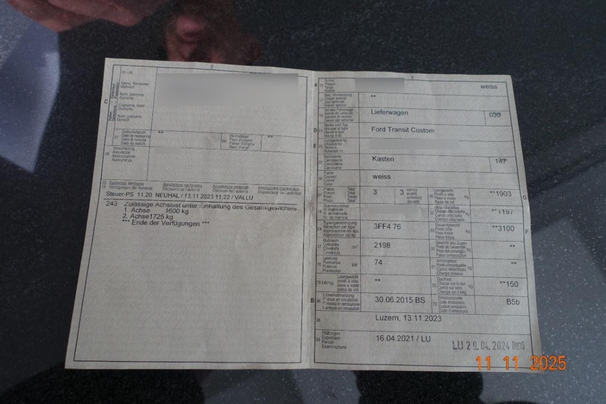 | Fahrzeugausweis | Vorhanden |