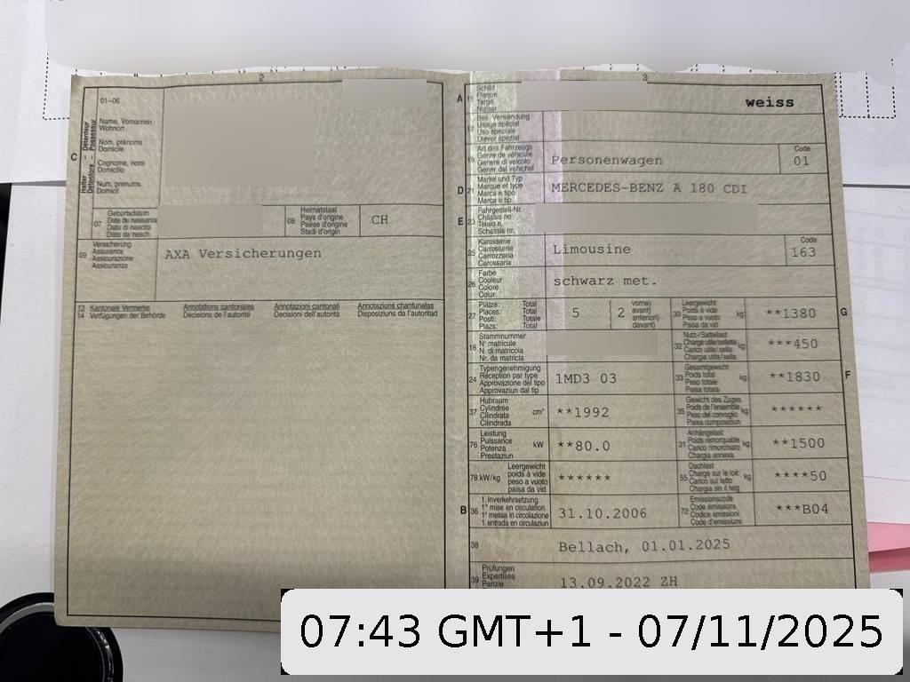 Sitzkomfort-Paket (Beifahrersitz höhenverstellbar), Design- und Ausstattungslinie AVANTGARDE (Kühlergrill verchromt, Leichtmetallräder im 5-Loch-Design 16J, Türgriffe aussen in Wagenfarbe, Licht: Nebelscheinwerfer, Radiovorbereitung, Antenne, Entstörung und 6 LS, Schutzleisten in Wagenfarbe, Farbkeil in Frontscheibe blau, Heckleuchten bichromatisch, Polster:Polsterung Stoff/Ledernachbildung ARTICO, Laderaumabdeckung, MB-Radio Audio 5 RDS mit CD-Player, Ausstiegsleuchten in den Türen, Lenkrad, Schalthebelgriff und Handbremshebelgriff in Leder), Tempomat, Sitze: Vordersitze heizbar, Mobiltelefon-Vorbereitung, 7-Stufen-Automat CVT Autotronic, Park Distance Control (PDC), EASY-VARIO-PLUS-System, Armlehne vorne mit Ablagefach, Sitzbelegungserkennung für Airbags, Elektrische Fensterheber vorne + hinten
