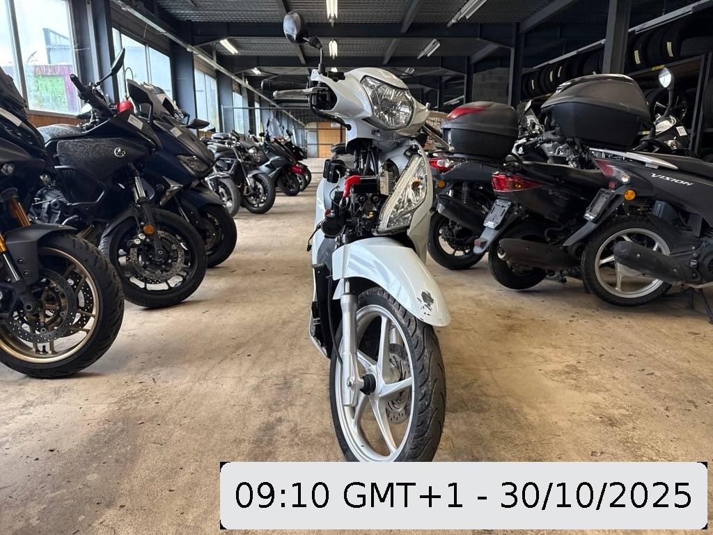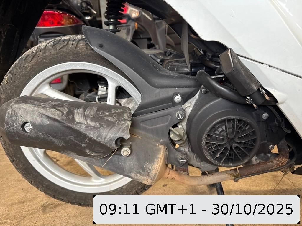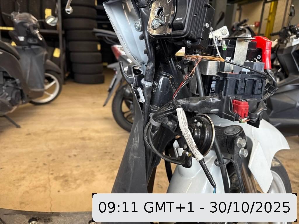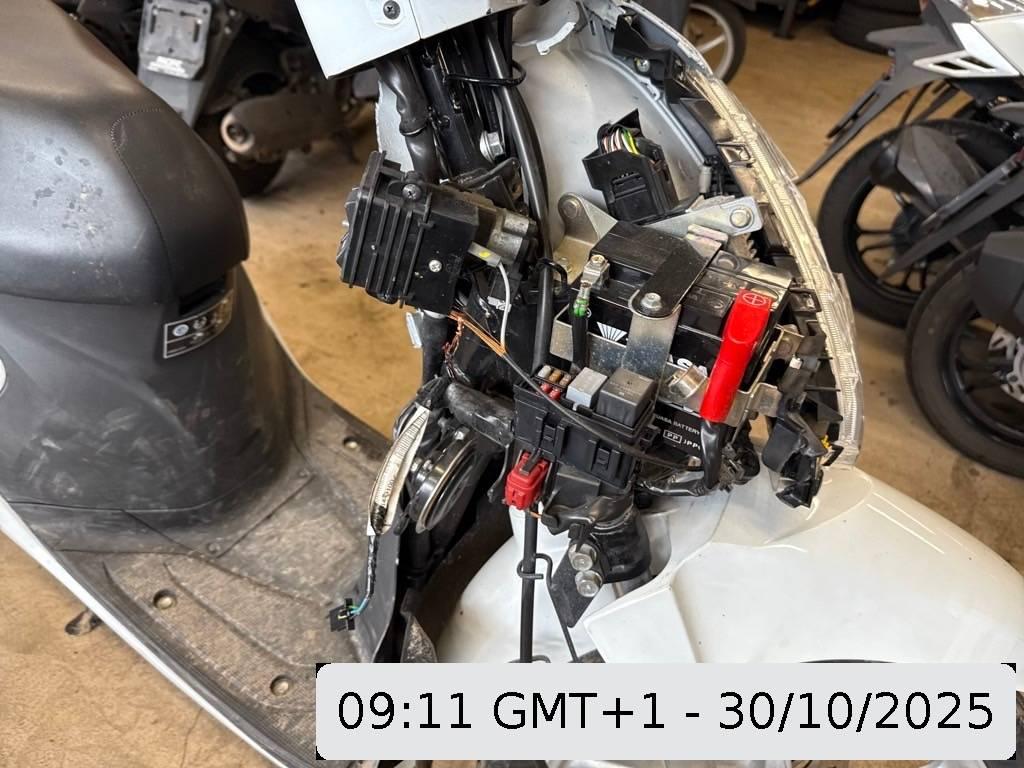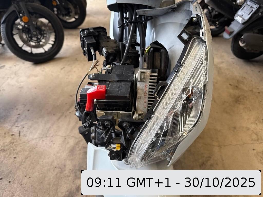Auspufftopf, Aussenspiegel links, Aussenspiegel rechts, Fussraster rechts, Gabelholm, Kabelstrang, Lenkanschlag, Lenker, Lenkschloss, Rahmen, Scheinwerfer, Schutzblech vorne, Seite rechts, Verschalungen rechts, Verschalungen vorne, Zündschloss