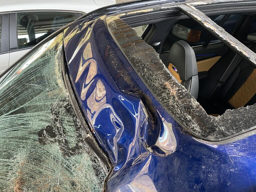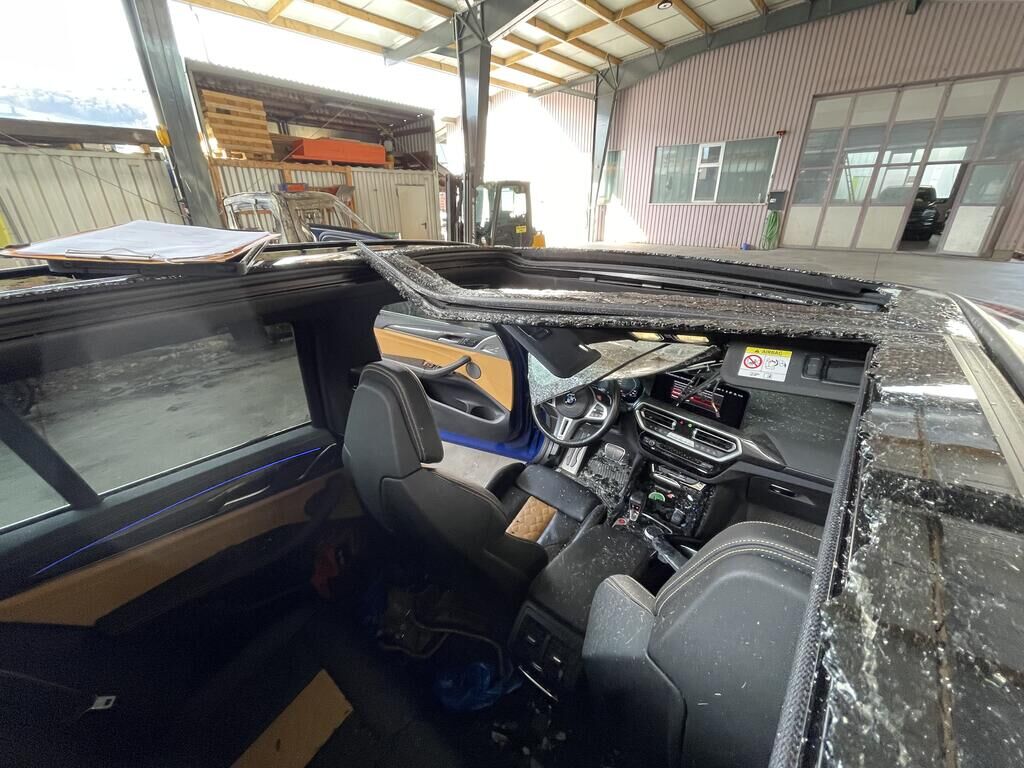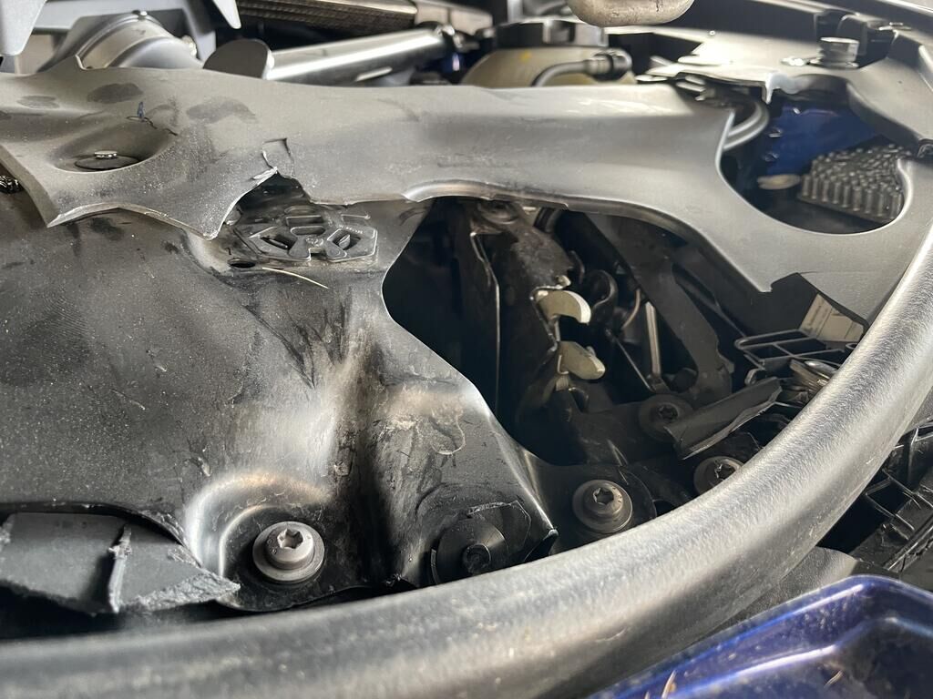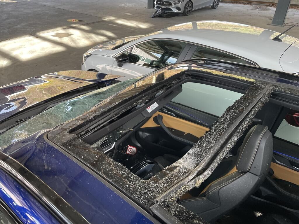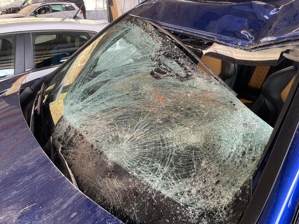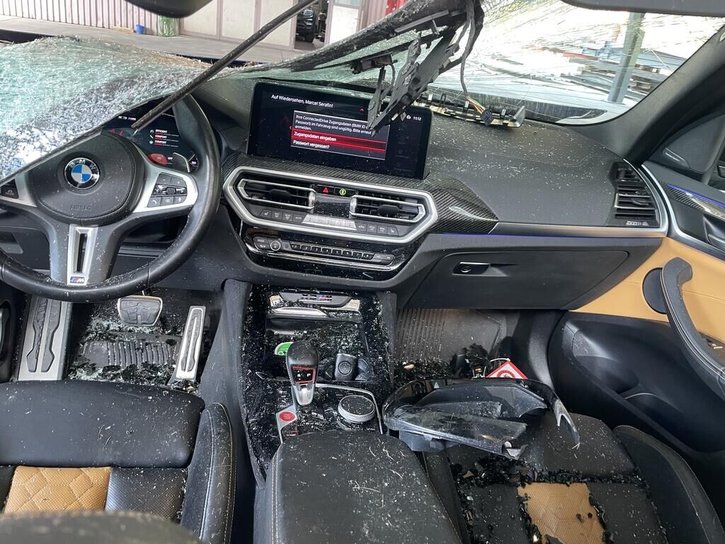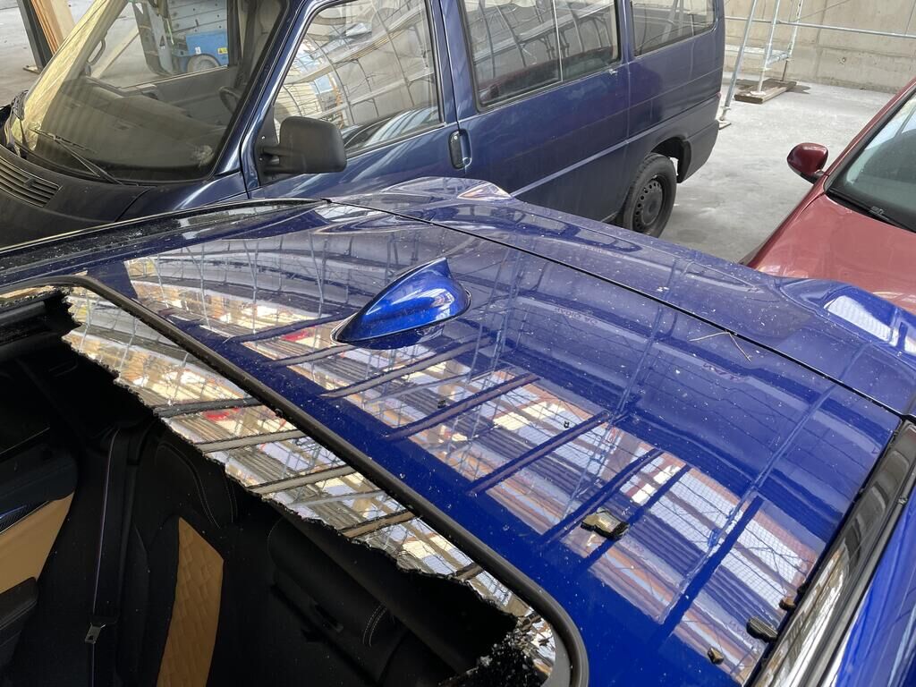 Motorhaube def. / Fussgängerschutz ausgelöst / Scheinwerfer li def. / Kotflügel li def. / Stossf mit Anbauteilen def. / Schlossträger def. / Frontscheibe def- / Fz- und Panoramadach def. / Dachhimmel und angrenzende Teile def. / Armaturenbrett und angrenzende Teile def. / Fz. voll mit Glassplitter / Aufzählung nicht abschliessend