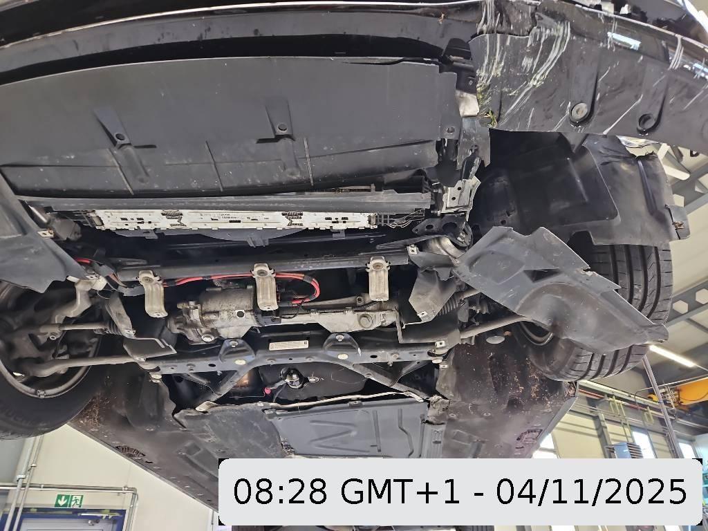 Achsträger, Antriebswelle, Federbein vorne links, Front, Front links, Frontblech, Gurtstraffer ausgelöst, Kotflügel links, Kühler, Kühlgitter, Ladeluftkühler, Lenkung, Motorhaube, Querträger, Rad vorne links, Radaufhängung vorne links, Radhaus vorne links, Scheinwerfer links, Schlossträger, Schweller links, Stosstange vorne, Vorderachse, Wagenboden