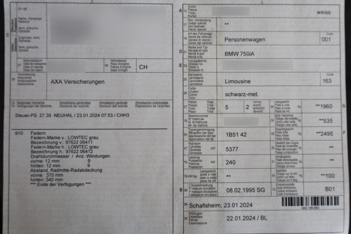 5 Leichtmetallfelgen im Exclusivstyling 16J mit Pneu, Ausstiegsleuchten in den Türen, Drehzahlmesser, Airbag: Airbag Fahrer und Beifahrer, Beifahrersitzhöhen- und Neigungsver-, Licht: Nebelschlussleuchte, Holzapplikationen Wurzelnuss, Wegfahrsperre elektronisch, Rücksitze heizbar, Lederlenkrad, 5-Stufen-Automat, Automatische Heizungskontrolle, Diebstahlwarnanlage mit Fernbedienung,, Kopfstützen hinten, Niveauregulierung Hinterachse, Tageskilometerzähler, Scheibenwischer vorne mit Intervall, Stossstangen und Aussenspiegel in Wagenfarbe, Katalysator geregelt, Automatische Stabilitäts- und Traktions- kontrolle, Fahrersitzhöhen- und Neigungsverstellung, Standlüftung, Wassertemperaturanzeige, Kreuzstützen für Vordersitze verstellbar, Pollenfilter (Staubfilter), Beleuchtetes und abschliessbares Handschuhfach, Bavaria C Business RDS mit Antenne, Ent- störung und 4/6 LS, Nebelscheinwerfer, Ablagefach in Armlehne hinten, Komfortsitze elektrisch verstellbar, Fahrersitz mit Memory, Lichtwarnsummer, Gurtstraffer vorne, Zentralverriegelung, Info-Display, Elektrische Fensterheber vorne + hinten, Vordersitze heizbar, Dynamische Stabilitätskontrolle (DSC), Antennen-Diversity, Antiblockiersystem (ABS), Ganzleder-Ausstattung, Bordcomputer, Mittelarmlehne vorne, Aussenspiegel rechts und links elektrisch verstell- und beheizbar, Tür- schloss und Scheibenwaschdüsen beheizbar, Grün getönte Scheiben, Veloursfussmatten vorne und hinten, Klimatisierungsautomatik, Scheinwerfer-Waschanlage, Lenksäule elektrisch einstellbar mit Memory, Sonnenschutzrollo für Heckscheibe elektrisch, Schliesshilfe für Heckklappe, Servolenkung geschwindigkeitsabhängig, Leseleuchte(n), beleuchteter Make up- Spiegel, Tempomat, Digital Uhr, Aussentemperaturanzeige, Lenkrad: Lenkrad längs- und höhenverstellbar, Lenkrad: Multifunktionslenkrad, Alternator verstärkt