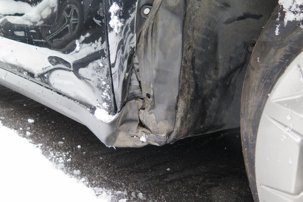 Pare-chocs avant enfoncé et cassé, aile avant droite enfoncée, éclairage cassé, armatures intérieures refoulées, sécurité piétons déclenchée, pied avant droit refoulé, suspension avant droite partiellement arrachée, arbre de transmission arraché, divers garnissages et accessoires cassés.