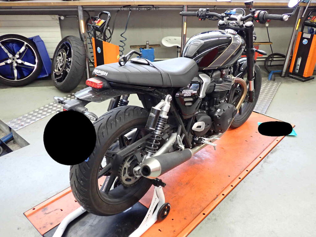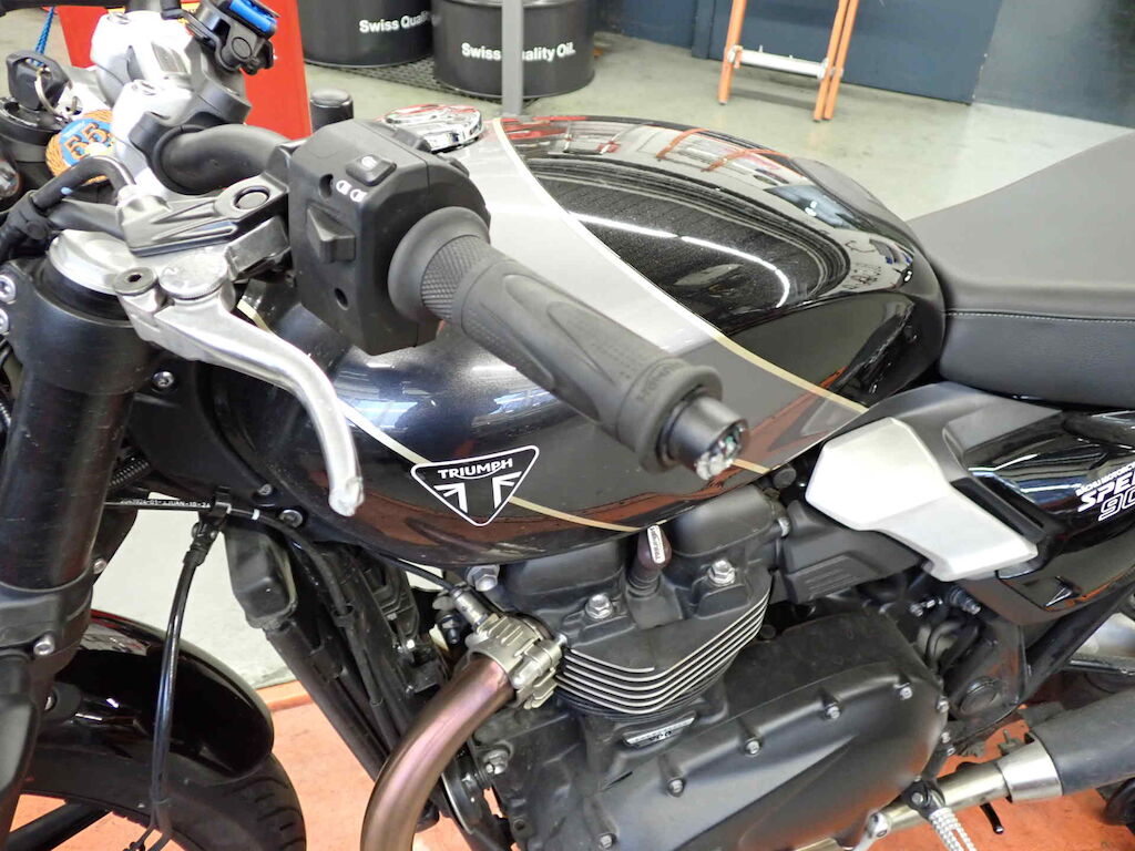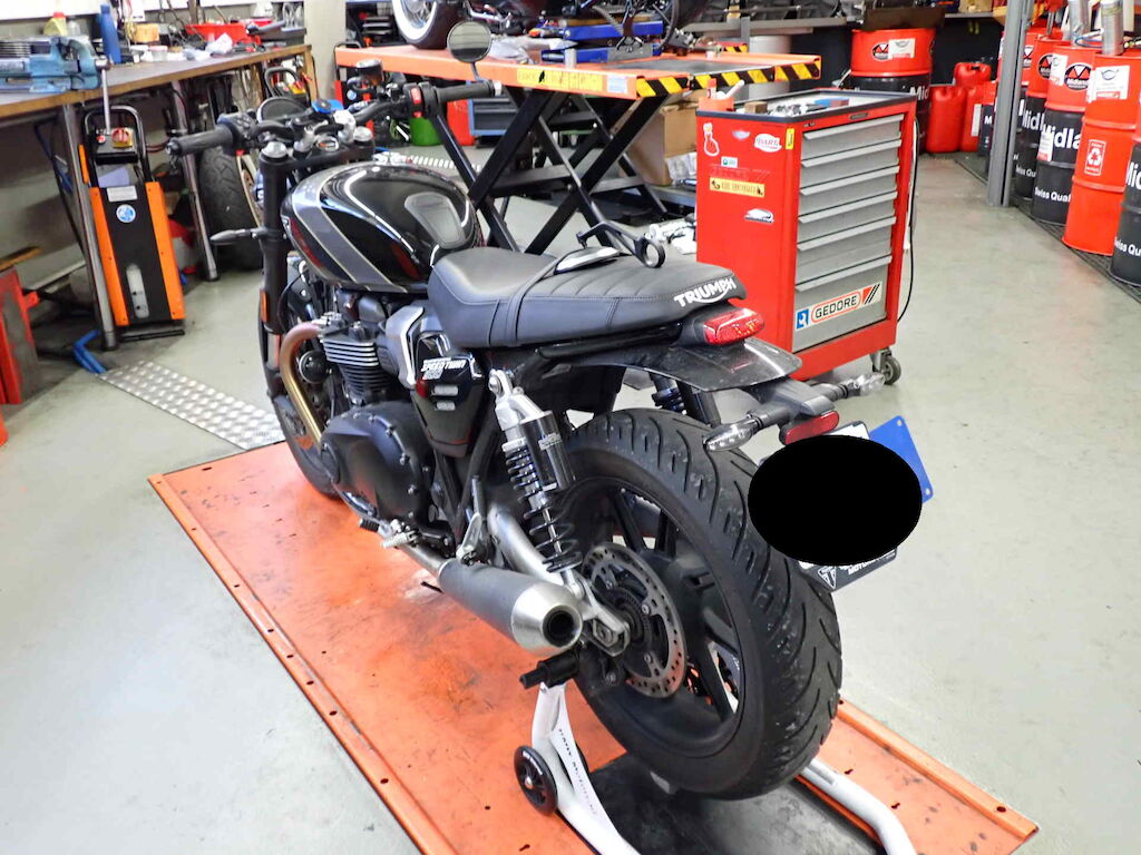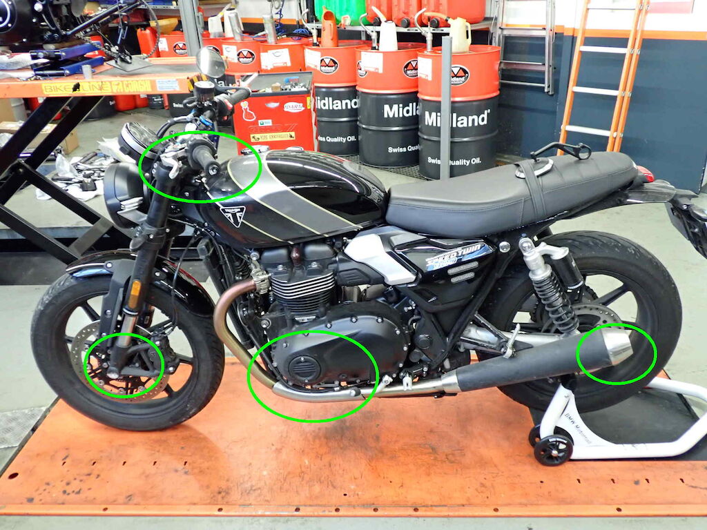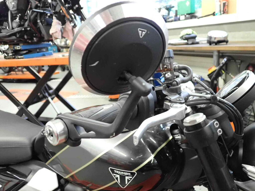 Speiegel, Bremshebel vorne und hinten, Lenker, Fussraster, Motordeckel, Auspuffkrümmer und Endschalldämpfer, Gabelholm rechts