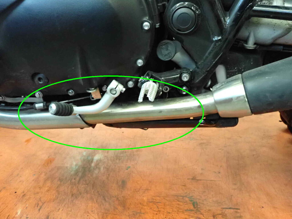 Spiegel, Kupplunsgebek, Lenker, Schalthebel, Fussraster, Motordeckel, Auspuffkrümmer und Endschalldämpfer, Gabelholm links
