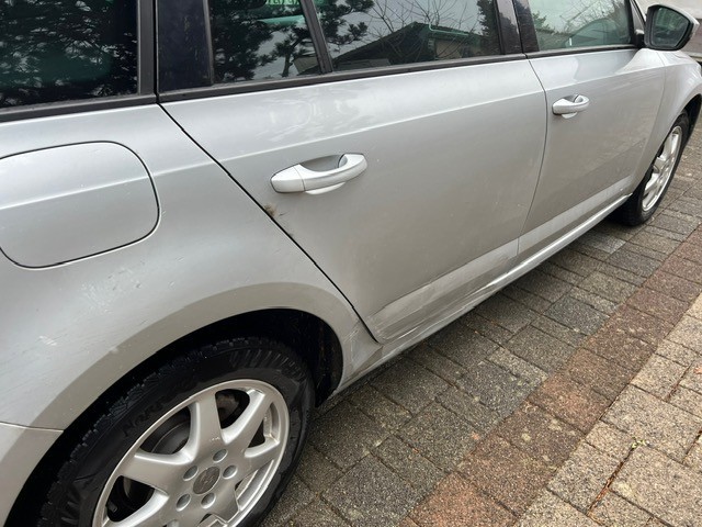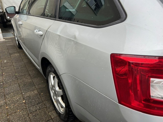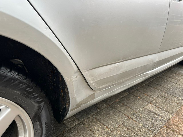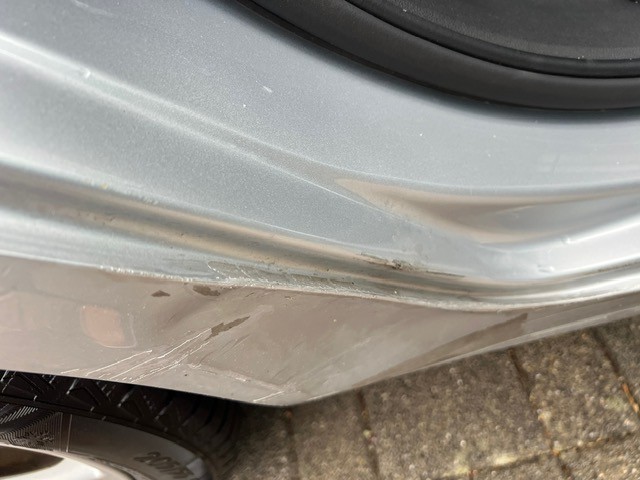 Rechts Schweller rechts ist eingedrückt. Tür hinten rechts ist eingedrückt. Heck |