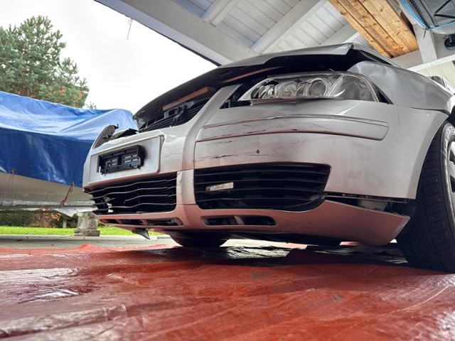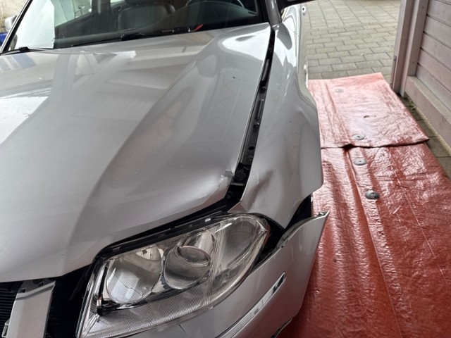 Front Front links eingedrückt. Frontblech/Maskenblech eingedrückt. Längsträger vorne rechts und links gestaucht. Fahrzeugvorbau nach rechts verschoben. Motor Sonstige Schäden |