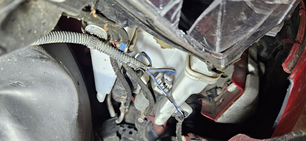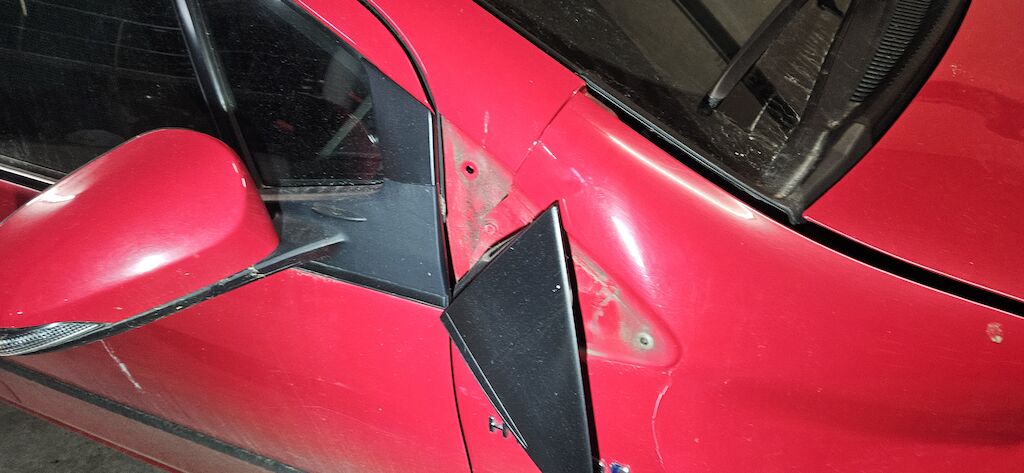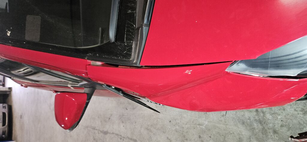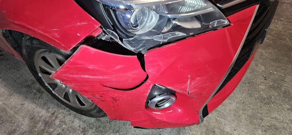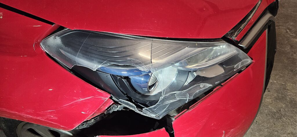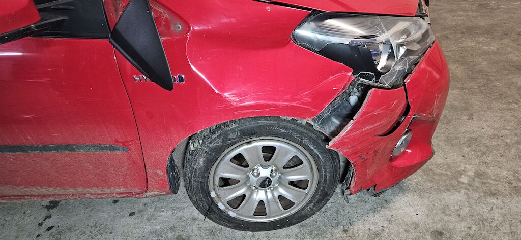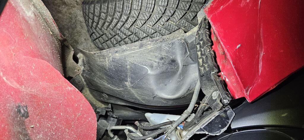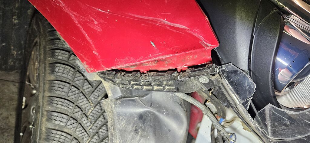 Stossstange, Kotflügel, Kotflügelhalter, Aufhängung VR, Kühlergrill, Felge und Reifen, Scheinwerfer VR, Scheibenwaschwasserbehälter, Radhausschale, Nebellampe VR.
