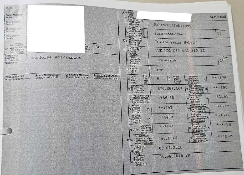 | Fahrzeugausweis war nicht im Auto. Datum der letzter MFK ist unbekannt Fahrschulpedale werden ausgebaut. |