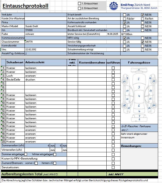 | Keine Gewähr auf die Angaben der Sonder- und Serienausstattung / keine mechanische Prüfung. Fahrzeug wurde unzerlegt expertisiert / keine Haftung für allfällige, nach Demontage bekanntwerdenden Mängel. Fahrzeugbereifung und Ausstattung gemäss Fotos / Fahrzeugkauf auf eigenes Risiko ab Platz ohne Nachwährschaft. DPF/FAP Filter nicht kontrolliert. Keine technische Prüfung (Werkstatttest) vorgenommen. Fahrzeug ab Platz, ohne Garantie und Aufbereitung. – Diverse Kratzer und Dellen am gesamten Fahrzeug |