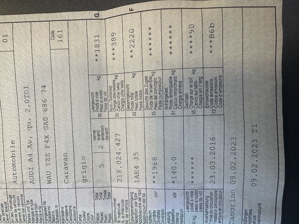| Tipo | A4 Avant Quattro 2.0 TDI S-Line kombi |