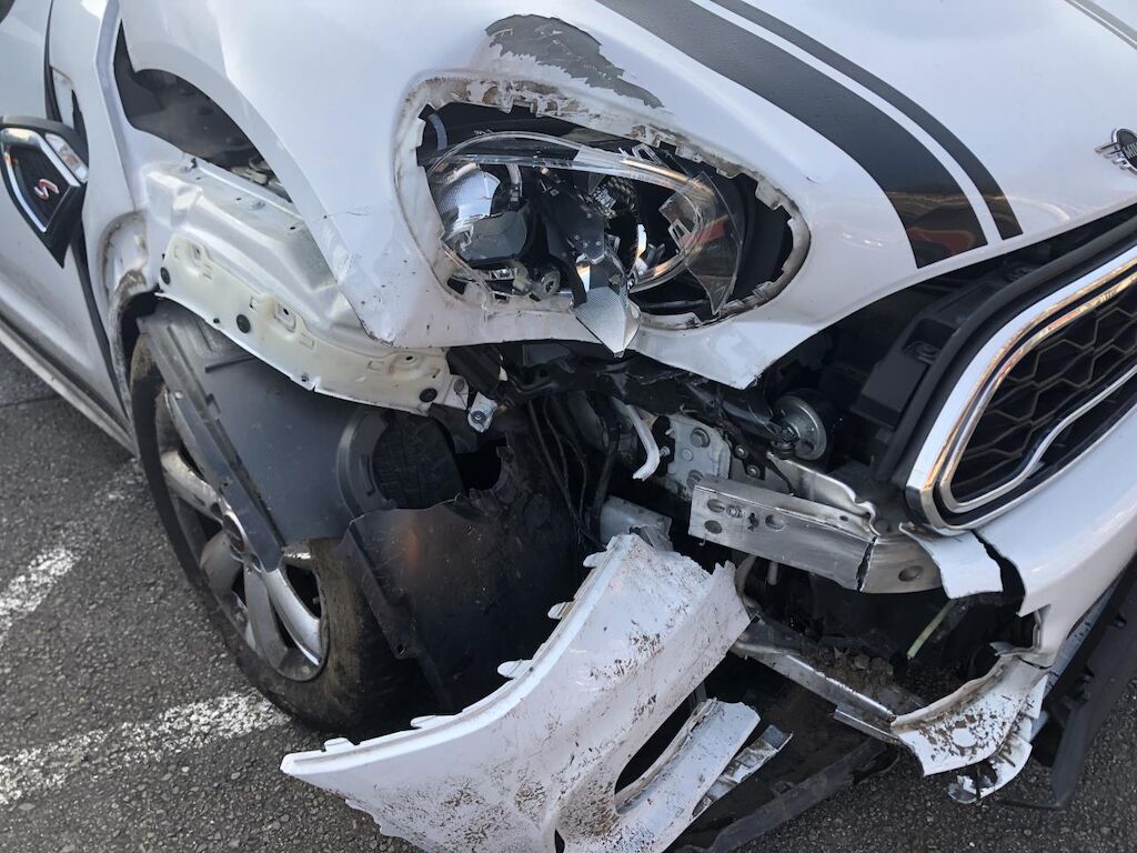 Lacerato scudo paraurti ant. cofan motore,proiettore,parabrezza, sospensione dx, radiatori,