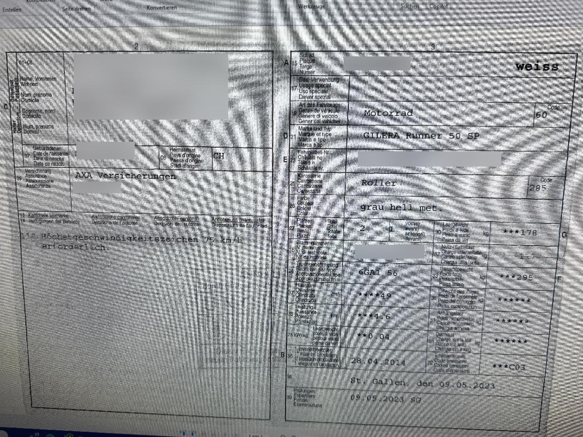 | Fahrzeugausweis | Vorhanden |