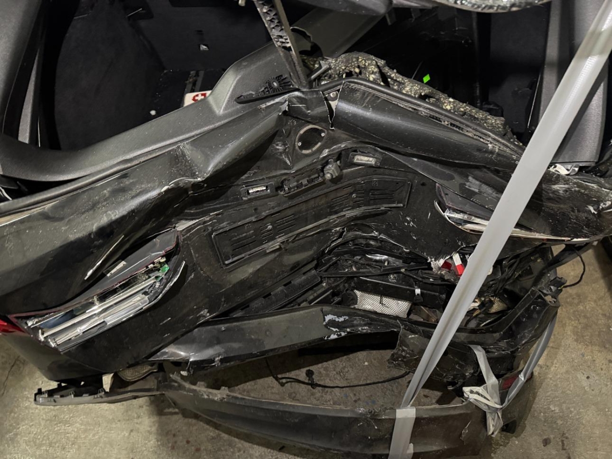 Airbag ausgelöst, Auspuffanlage, Dach, Diverse Anbauteile, Gurtstraffer ausgelöst, Heck, Heck rechts, Heckblech, Heckscheibe, Kofferraumboden, Kotflügel rechts, Radhaus hinten rechts, Rücklicht links, Rücklicht rechts, Schweller rechts, Seite rechts, Seitenwand links, Seitenwand rechts, Stossstange hinten, Türe hinten rechts, Türe vorne rechts