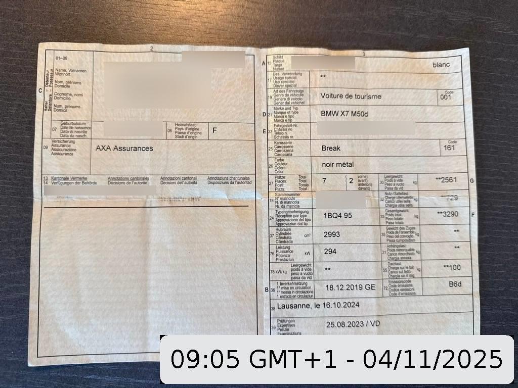 DAB+ (Digital Audio Broadcasting), Mittelarmlehne hinten, Seitenaufprall-Schutzsystem, Einstiegsschienen, harman/kardon Surround Sound-System, Parkassistent vorne und hinten inkl. Rückfahrkamera, Intelligenter Notruf, Dynamische Bremsleuchten, Räder: Reifendruck-Kontrollanzeige, Airbag: Seitenairbag für Fahrer und Beifahrer, TeleService, Pollenfilter (Staubfilter), Bereifung mit Notlaufeigenschaft, M Sportdifferential, BMW Gestiksteuerung, Bremsbelag-Verschleissanzeige, Aussenspiegelpaket, Dynamische Stabilitätskontrolle (DSC), Komfortzugang, Assist: Tempomat mit Bremsfunktion, Antiblockiersystem (ABS), 8-Stufen-Sportautomat Steptronic, M Leichtmetallräder Doppelspeiche 754 M Bicolor mit Notlaufeigenschaften 21J, M Sportbremsen, Sportauspuffanlage, Lenksäule in Höhe und Tiefe einstellbar, Vorbereitung Apple CarPlay, Diebstahlwarnanlage, BMW BluePerformance mit AdBlue, LED Nebelscheinwerfer, Galvanikapplikation, Airbag: Knie-Airbag für Fahrer und Beifahrer, Servotronic, Active Protection, Instrumententafel in Sensatec, Umgebungsausleuchtung (Follow me home), Display Schlüssel, Driving Assistant, Bremsenergie-Rückgewinnung, 3. Sitzreihe, Edelholzausführung Fineline schwarz mit Metallefekt hochglänzend, Veloursfussmatten vorne und hinten, Adaptiver LED-Scheinwerfer, Armlehne vorne mit Ablagefach, Head-Up Display, Abschliessbare Radschrauben, Window-Kopfairbags, ISOFIX Kindersitzvorrichtung, USB-Anschluss, Wi-Fi Hotspot, Assist: ATTENTION ASSIST (Aufmerksamkeits-assistent), Licht: Fernlicht-Assistent, Warndreieck, Licht: Ambientes Licht, Remote Services, Innenraumbeleuchtung, Vordersitze elektrisch verstellbar, mit Memoryfunktion, BMW Live Cockpit Professional, Licht: Heckleuchten in LED-Technik – einteilige LED-Heckleuchten mit Rauchglas Komponenten – Heckleuchte mit Schlusslicht, Bremslicht, Fahrtrichtungsanzeiger (LED-Technologie), Airbag: Airbag Fahrer und Beifahrer, Airbag: Airbag Beifahrer deaktivierbar, Media: Concierge Service, Sitze: Sportsitze vorne, Connected Package Professional, Auto Start-/Stop-Anlage, Wärmeschutzverglasung, Akustikglas, Adaptive 2-Achs Luftfederung, Cupholder, iDrive Controller Display, BMW Individual Dachhimmel Alcantara Anthrazit, Gepäcktrennnetz, Leder-Ausstattung Vernasca, Lackierung: Uni-Lackierung, Parkbremse, elektromechanisch, Panorama-Glasdach, Real Time Traffic Information, Regensensor für Scheibenwischer vorne, M-Lederlenkrad, Vordersitze heizbar, Rücksitzlehne geteilt abklappbar, Scheibenwaschdüsen beheizt, Beide Make up-Spiegel beleuchtet, Klima: Klimatisierungsautomatik 4- Zonen, M Aerodynamicpaket, Schliessystem mit Zentralverriegelung, Telefonie mit Wireless Charging, Partikelfilter und Oxydationskatalysator, Steckdose 12V, Auspuffblende, Allradantrieb permanent, Reifenkontrollanzeige, Assist: Crash-Sensor, Shadow Line glänzend, ConnectedDrive Services