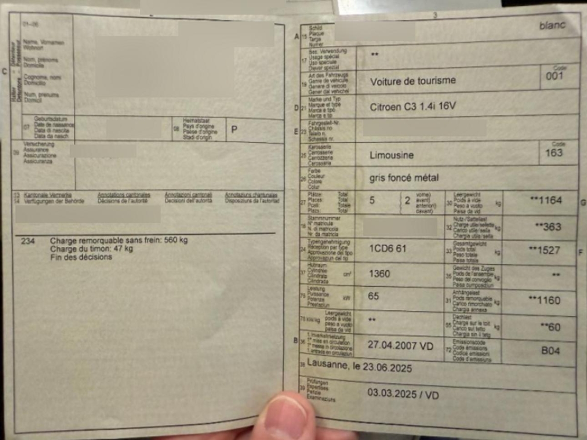 | Fahrzeugausweis | Vorhanden |