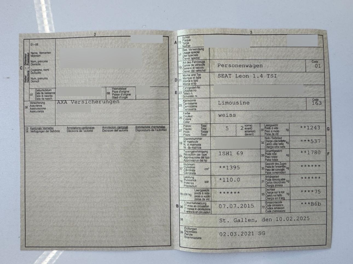 Sportsitze vorne mit Lendenwirbelstütze, Räder: 4 Leichtmetallfelgen 17J mit Pneu, Teppichfussmatten vorne und hinten, Gurtkontrolle, Gurte Höhenverstellbar vorne, Klima: 2-Zonen-Klimaautomatik, Aussentemperaturanzeige, Media: Mobiltelefon Freisprecheinrichtung Bluetooth, Ambientes Licht, Leuchtweitenregulierung von innen, Wärmeschutzverglasung, Innenspiegel automatisch abblendbar, XDS inkl. Berganfahrassistent, Touchscreen, Einstiegsleisten in Aluminium, Airbag: Window-Kopfairbags vorne und hinten, Aussenspiegel mit LED Blinker, 12-Volt-Steckdose vorne, Assist: Einparkhilfe vorne und hinten mit optischer Anzeige, Lenkrad: Ledermultifunktionslenkrad, Motor Start-/Stop-Anlage, Sitze: Rücksitzlehne geteilt abklappbar 1/3 – 2/3, Assist: Tempomat, Media: DAB+ (Digital Audio Broadcasting), Schalthebelknauf in Leder, Sonnenblende Fahrer und Beifahrerseite mit beleuchtetem Spiegel, ABS, EBD elektronische Bremskraftverteilung, Media: Radio/CD-Player mit MP3, Tankdeckel-Entriegelung von innen, Reifenpannen-Set (Tire Kit), Kofferaumnetz, 3-Punkt-Sicherheitsgurte auf allen Plätzen, Licht: LED Scheinwerfer, Aussenspiegel und Türgriffe in Wagenfarbe, Gurtstraffer mit Gurtkraftbegrenzer vorne, Elektronisches Stabilitäts-Programm (ESP) mit Reifendruckkontrolle, Bremsassistent (BAS) und Sperrdifferential, Elektronische Traktionskontrolle (ASR/TCS), Kofferraumbeleuchtung, Airbag: Fahrer und Beifahrer Airbag, Licht: Tagfahrlicht, Lackierung: Uni-Lackierung, Bordcomputer, Auspuffanlage mit 2 Endrohren, Assist: Berganfahrhilfe (Hill Holder), Airbag: Beifahrerairbag deaktivierbar, Media: Lautsprecher 8, Kindersitzvorrichtung ISOFIX Beifahrerseite, Abgedunkeltes Scheibenglas (ab B-Säule), Fahrwerk: Sportfahrwerk, Zentralverriegelung mit Fernbedienung, Licht: Nebelscheinwerfer mit Cornering-Funktion, Katalysator geregelt, USB-Anschluss, Sitze: Mittelarmlehne vorne, Wegfahrsperre elektronisch, Heckscheiben-Wisch-Waschanlage mit Intervall, Elektrische Fensterheber vorne und hinten mit Komfortbetätigung und Einklemmschutz, Seitenaufprall-Schutzsystem, Handschuhfach Beleuchtet, Sitzbezüge in Alcantara, Airbag: Knie-Airbag für Fahrer, Sitze: Vordersitze höhenverstellbar, Airbag: Seitenairbag für Fahrer und Beifahrer, Aussenspiegel rechts und links beheizt, elektrisch verstell-/ und einklappbar, Lenkrad längs- und höhenverstellbar, Licht: Halogenscheinwerfer, Servolenkung, Gurtstraffer vorne, Kopfstützen vorne höhenverstellbar, Licht- und Regensensor, Mittelkonsole mit Ablagefach, Licht: Coming-home-Funktion, Getriebe: 7-Gang-Sequentielle-Getriebe mit Automatikfunktion, Kopfstützen hinten (3), Licht: LED Heckleuchten, Media: Navigationsystem Seat Media System, Cupholder vorne