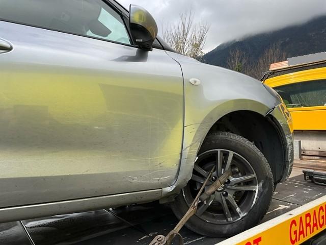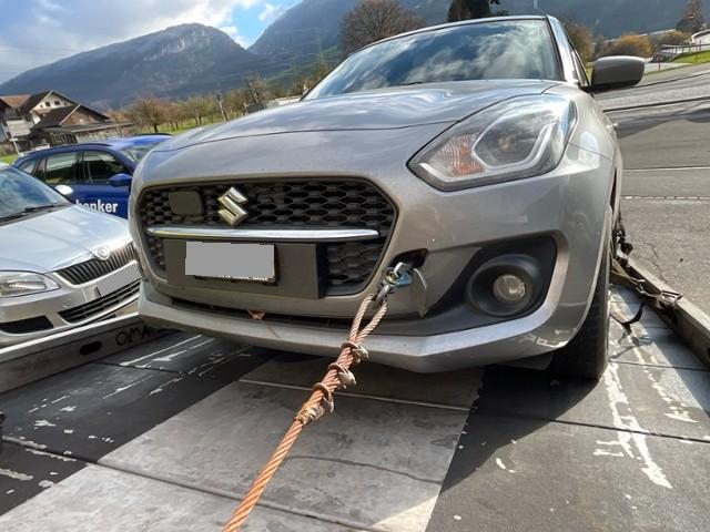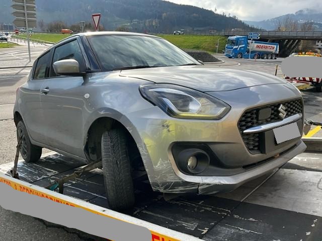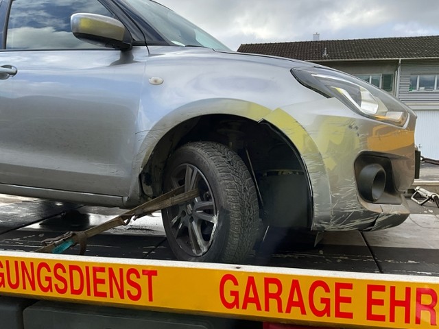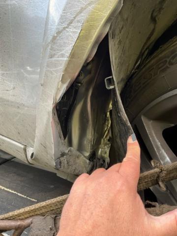 Beschädigungen Rechts Anstoss rechts im Bereich der A-Säule. Front Motor Achse Weitere Beschädigungen |