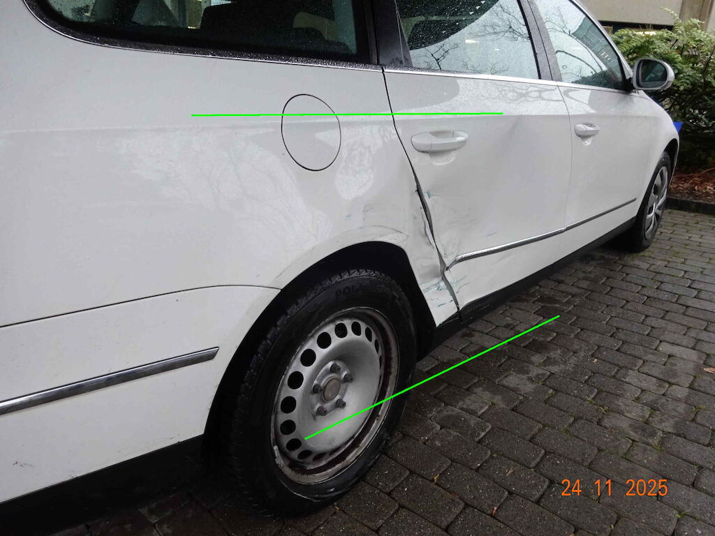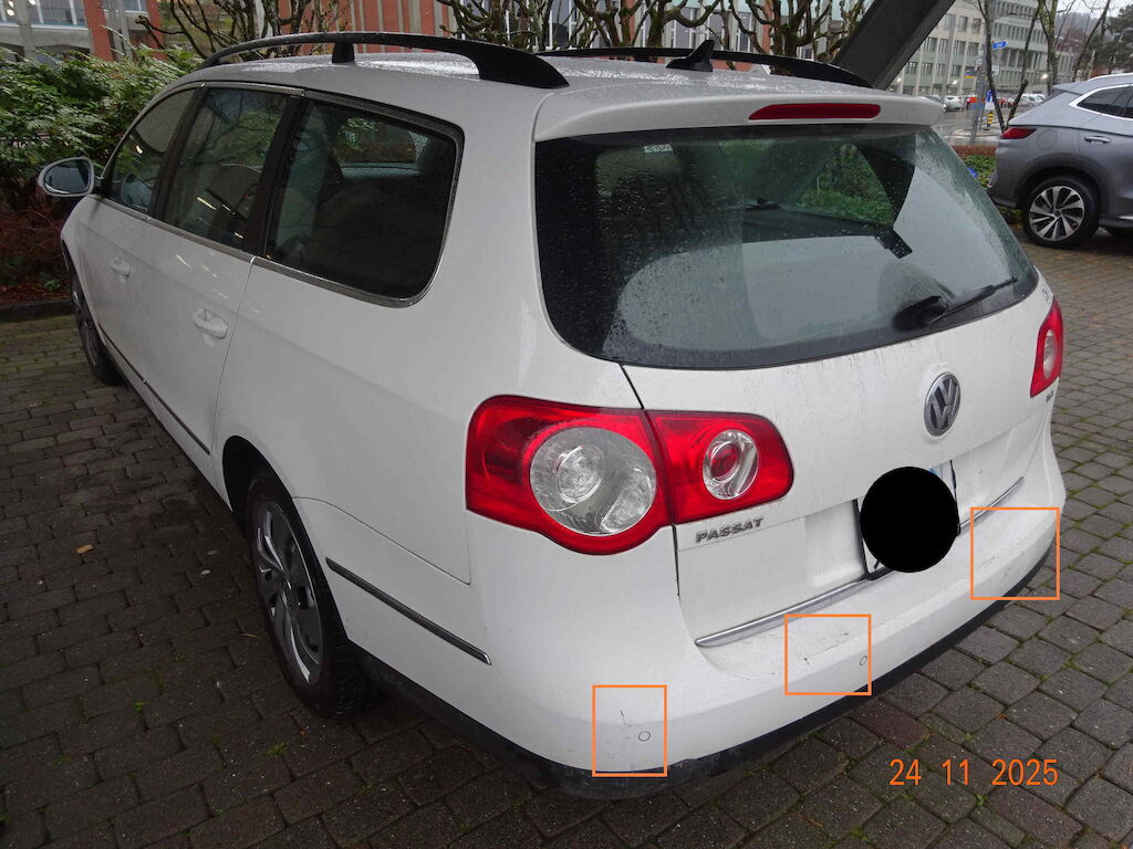 Fahrzeug nass und schmutzig bei der Besichtigung.