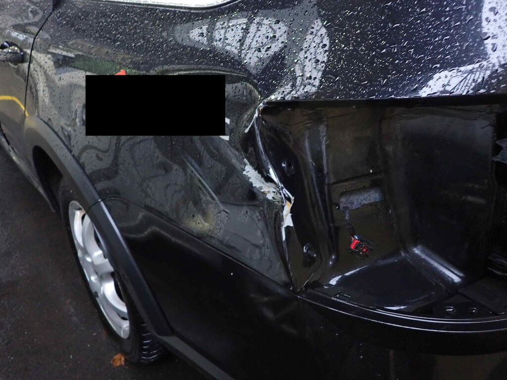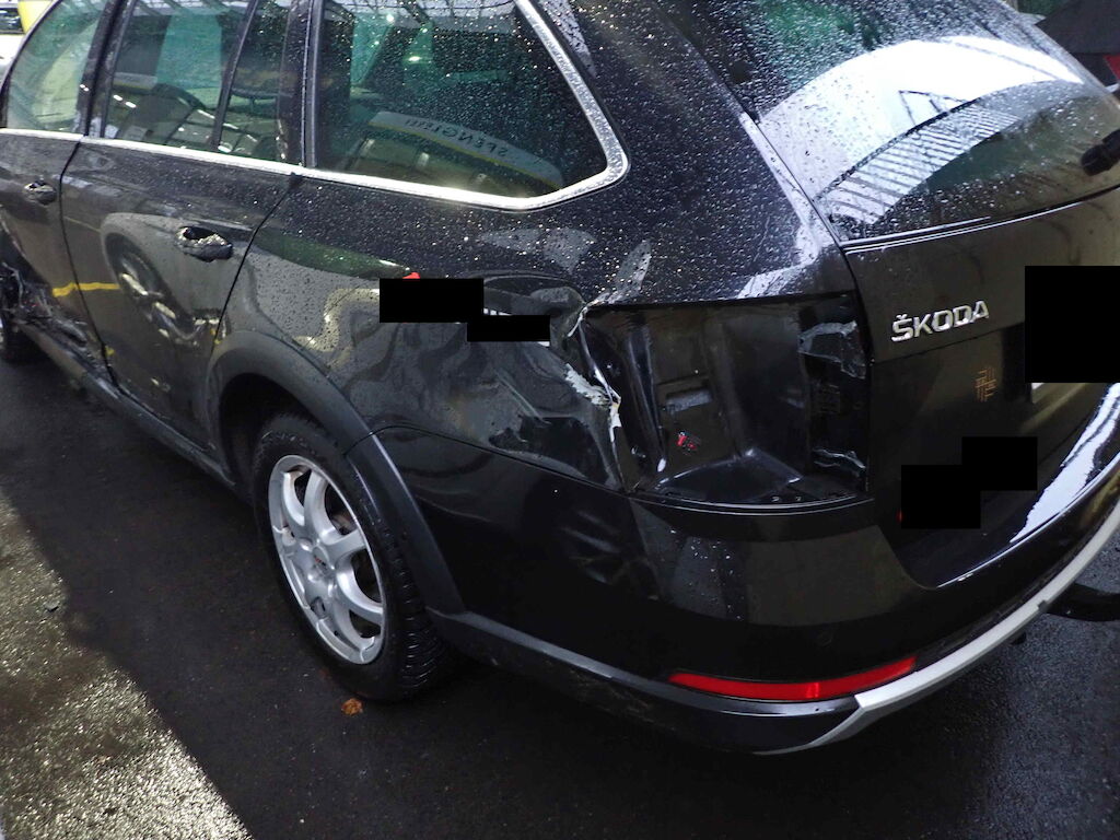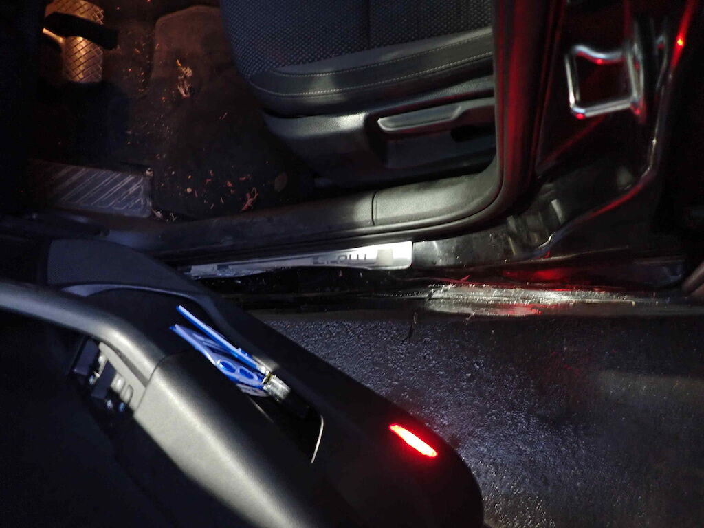 ganze linke Seite: StSt, Kotflügel, Türen, Seitenwand, StSt hi., Leuchte hi., beide Felgen, Aufhängung VL, Schwelle, A-Säule