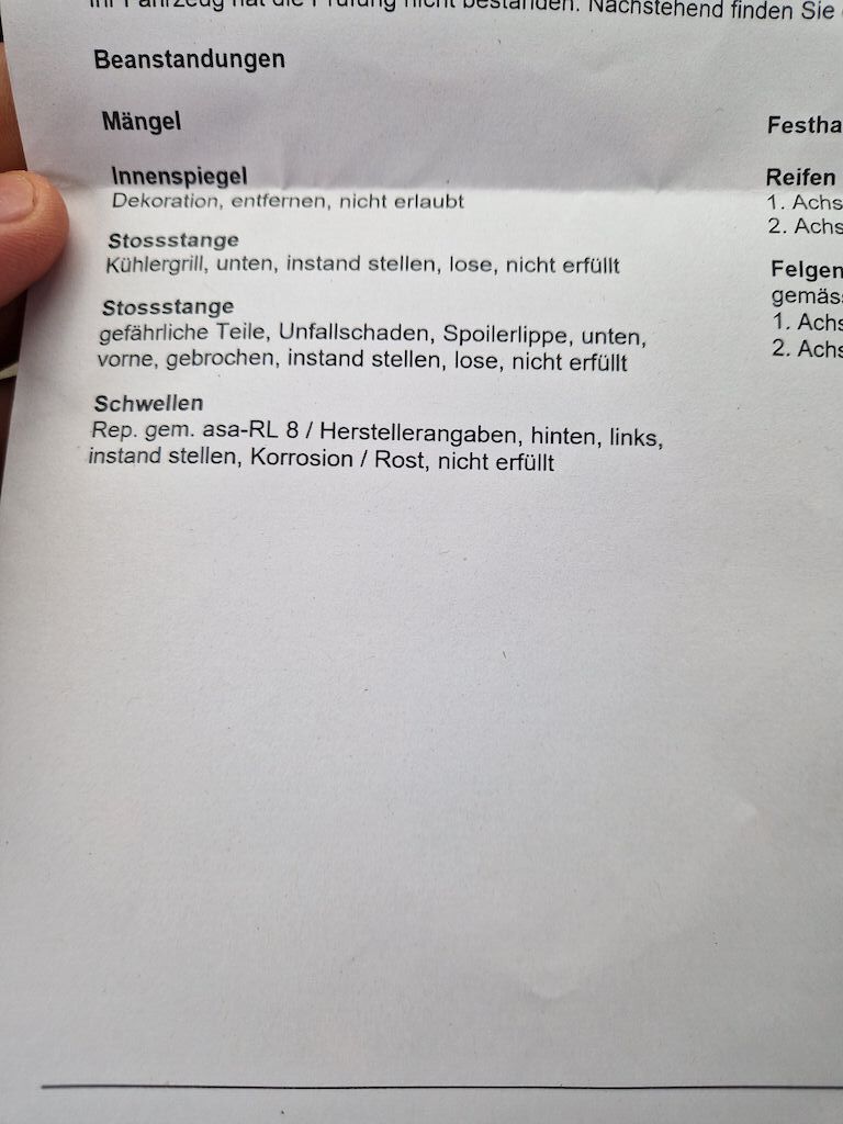 Keine technische Prüfung (Werkstatttest) vorgenommen