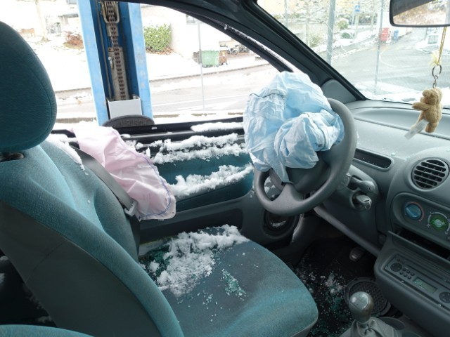 Beschädigungen Front Front eingedrückt. Front links eingedrückt. Weitere Beschädigungen |