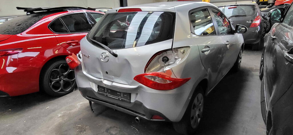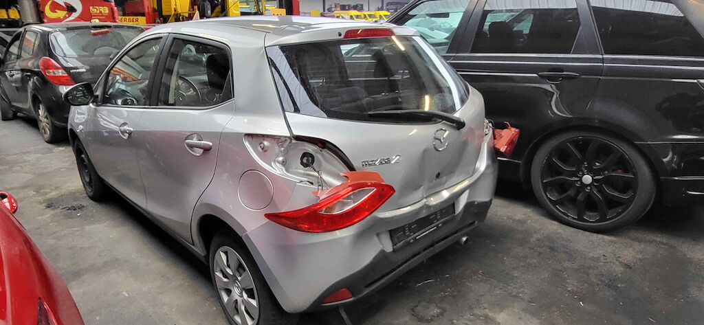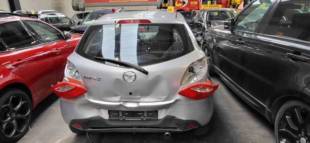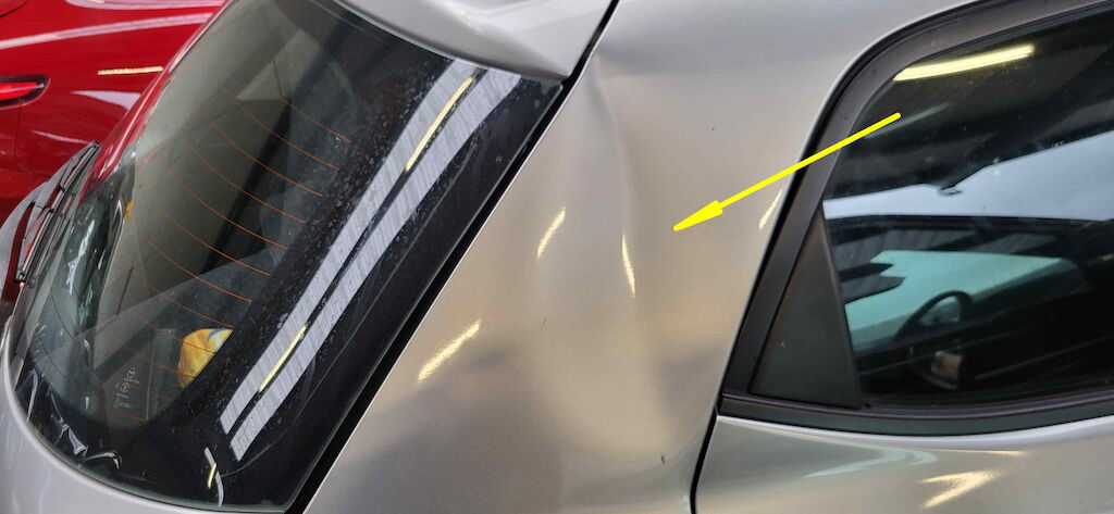Heck stark eingedrückt, Seitenwände links und rechts gestaucht.