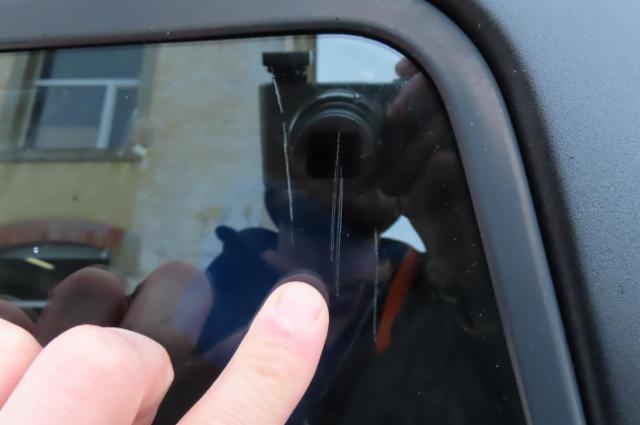 Türscheibe hinten links ist zerbrochen / beschädigt.